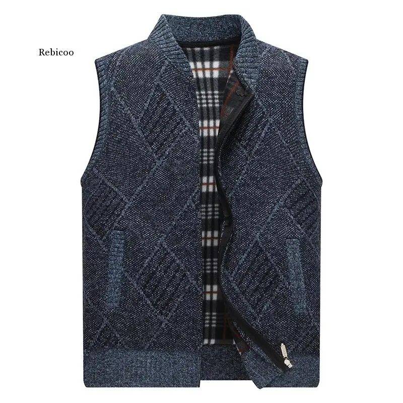 Мужской вязаный флисовый кардиган без рукавов, на молнии, с карманами