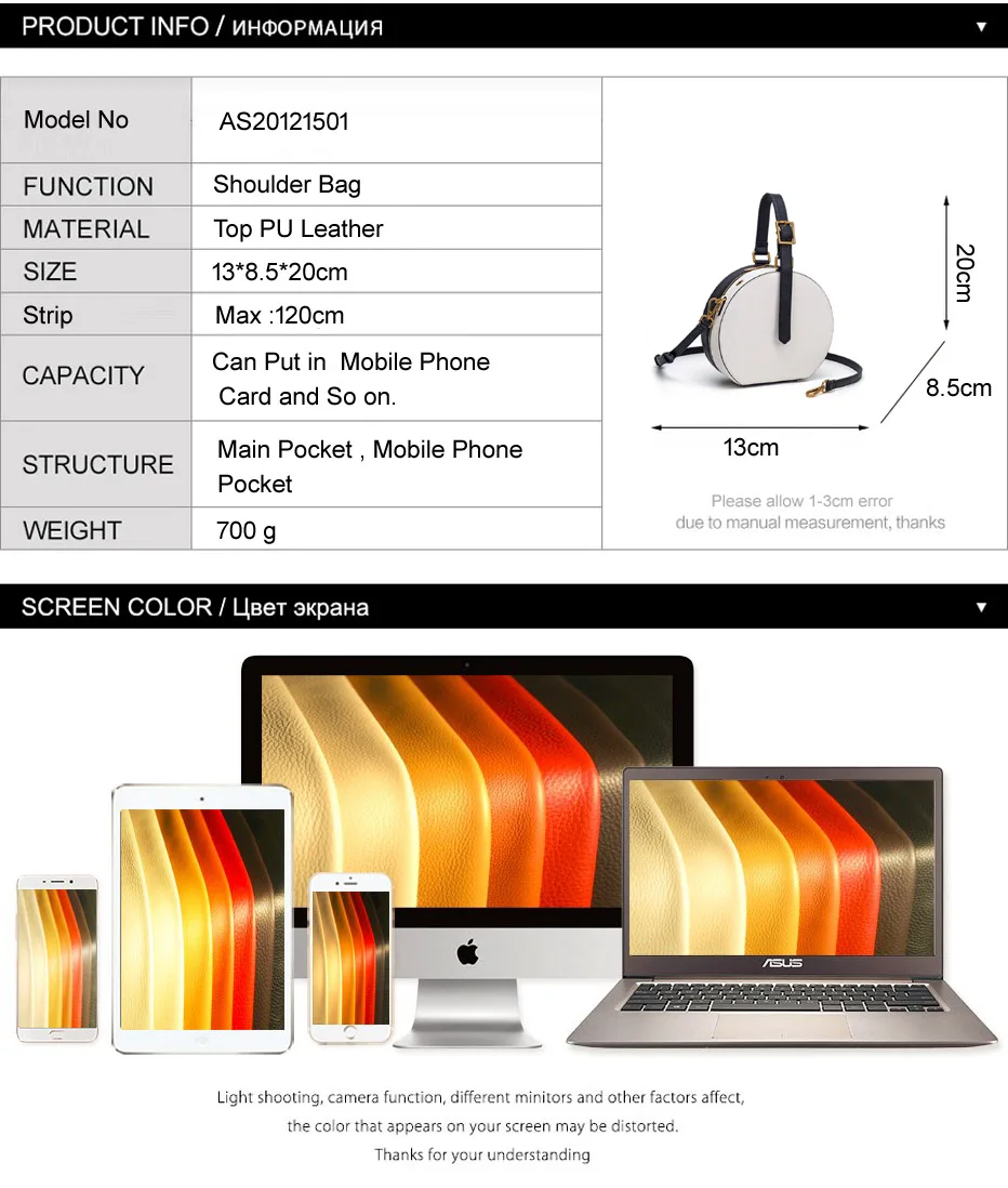 Сумка женская через плечо ALNEED, круглая, с заклепками, 2021