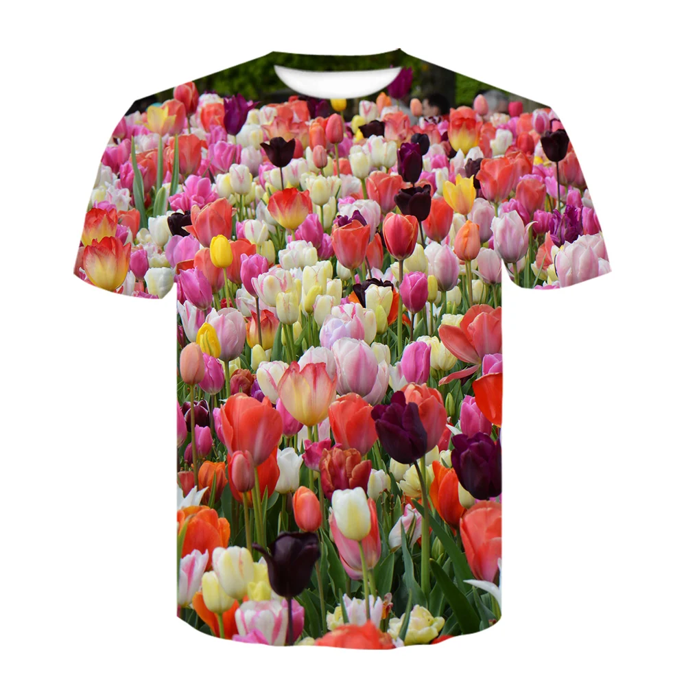 Футболка в стиле Харадзюку для мужчин и женщин, уличная одежда с принтом тюльпанов, цветов, роз, смешная футболка в стиле хип-хоп, лето