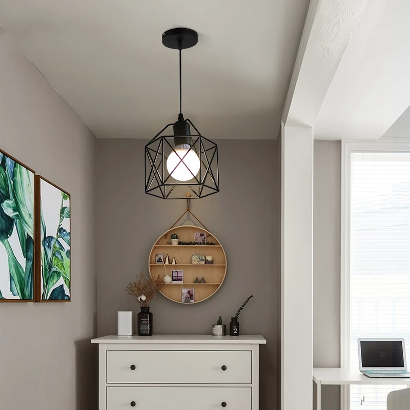 Современный светодиодный подвесной светильник, железо, золото, черный, Минималистичная металлическая клетка, подвесной светильник для гостиной, ресторана, магазина, бара, украшение