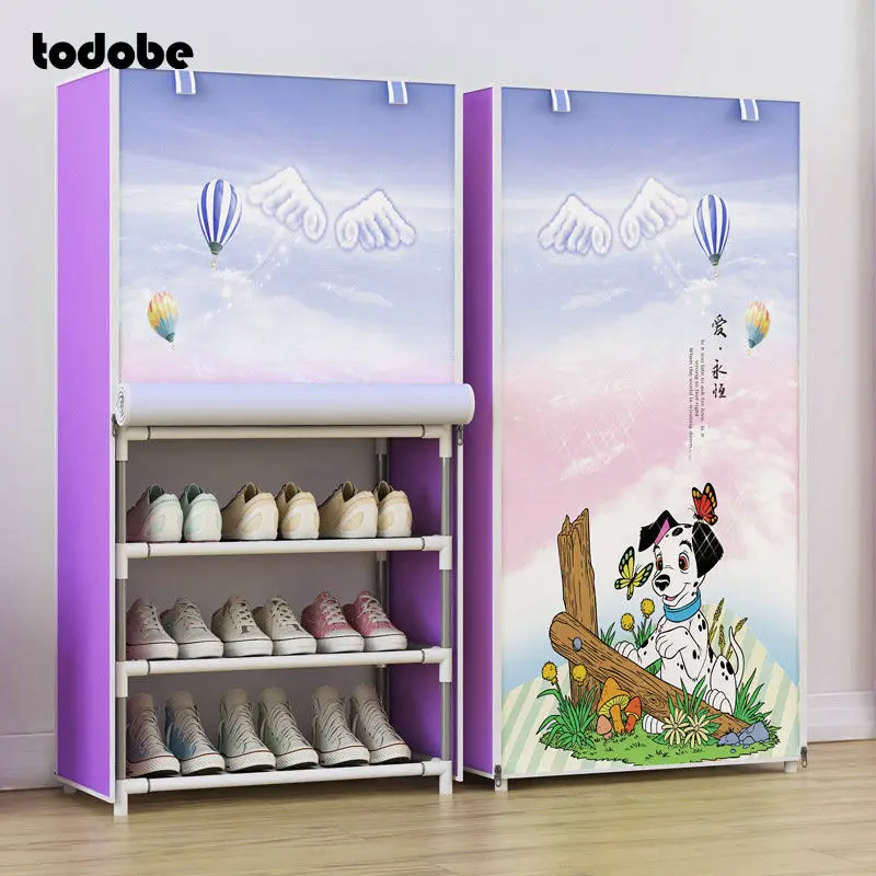 Простая Пыленепроницаемая полка для обуви, шкаф для обуви в сборе, экономия места на стоячей полке, для спальни, прихожей, тканевый складной шкаф для хранения обуви