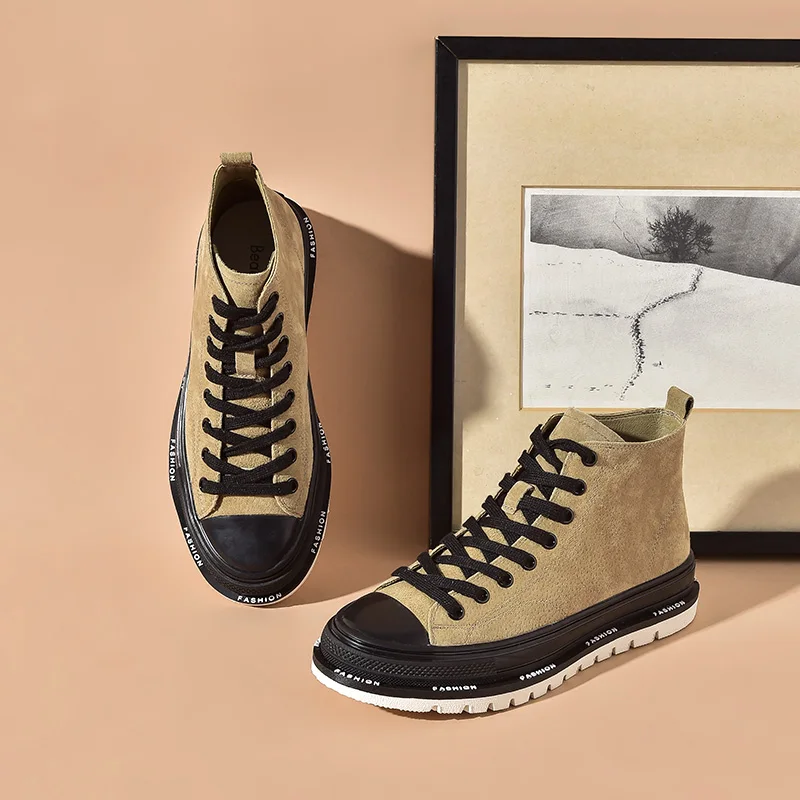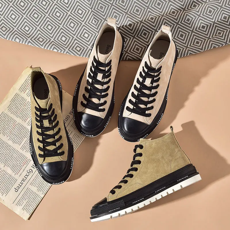 Женские высокие кроссовки BeauToday, из замши, парусины, на платформе, с круглым носком, на шнуровке, повседневные, 29048