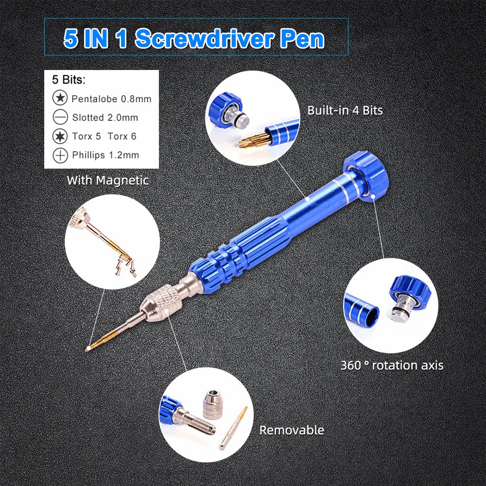 Features 4:5pcs Replacement Bits (Phillips,Slotted,Pentalobe,Torx)