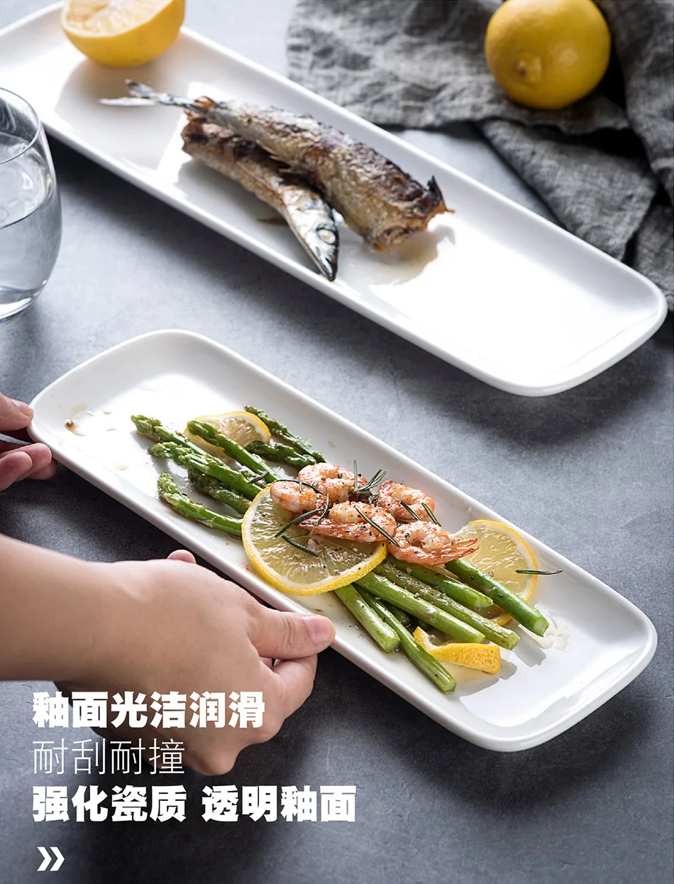 Японская посуда чисто-белая керамическая простая тарелка для суши креативная подвесная тарелка для десерта длинная тарелка для закусок