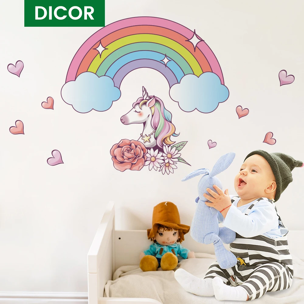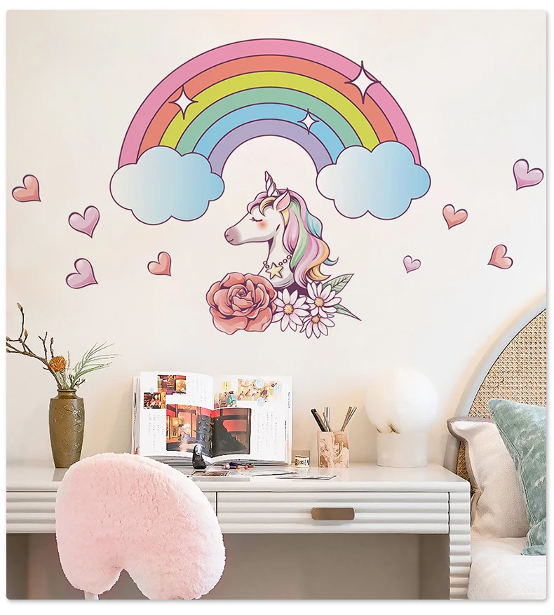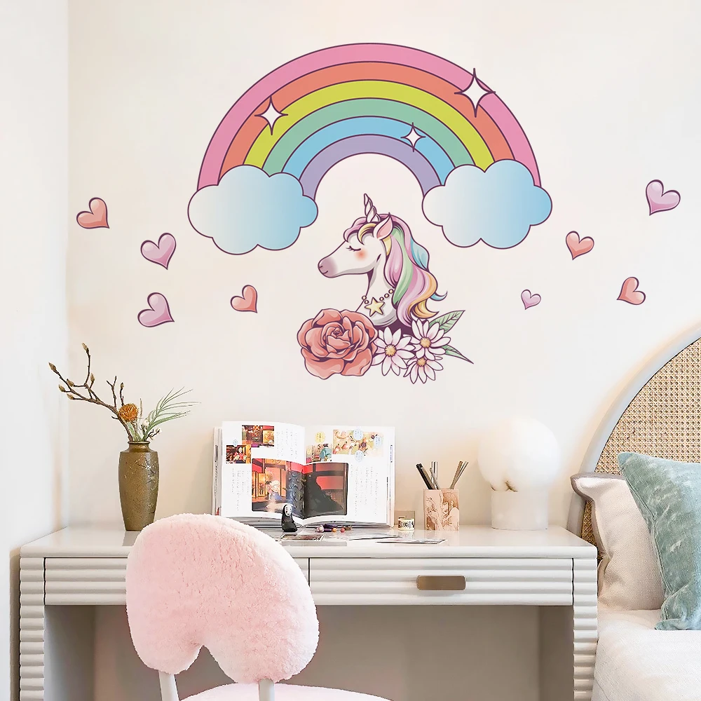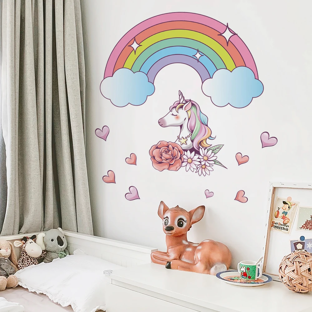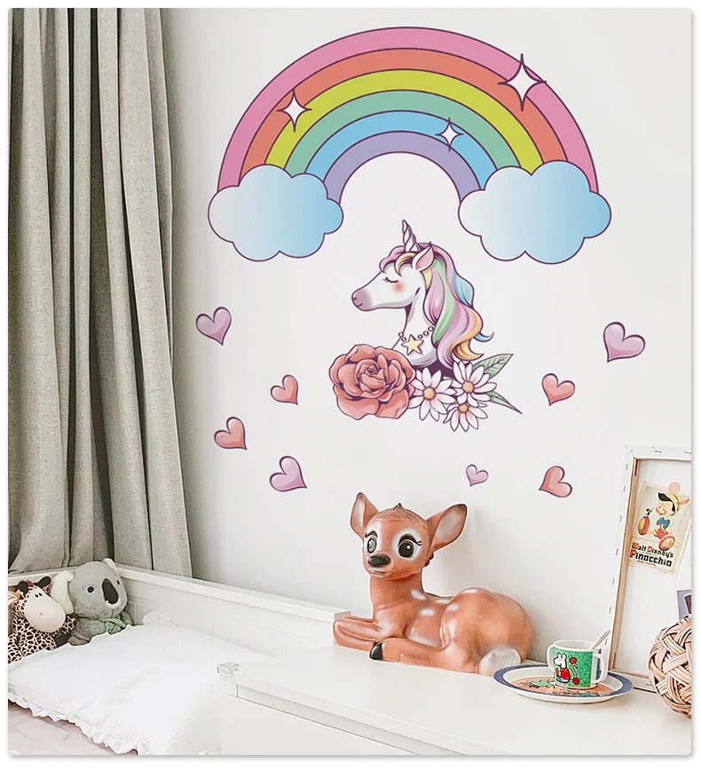 Радуга Единорог наклейки на стену для детской комнаты мебель для спальни DIY Наклейка на стену виниловая декоративная стена аксессуары для украшения дома