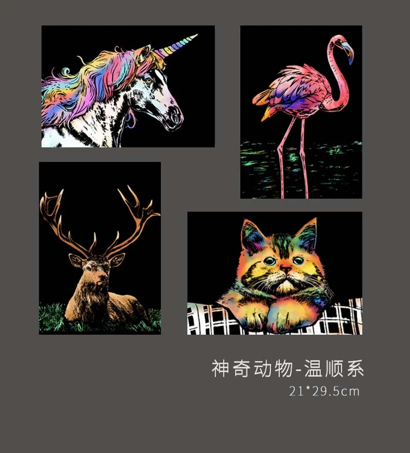4 шт.компл. Волшебная Красочная доска для рисования A4 A5, бумажная живопись, соскабливание, Детские Обучающие Развивающие игрушки, рисование, рисование, игрушка для царапин