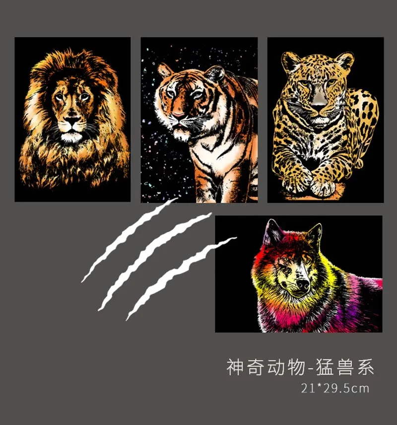 4 шт./компл. Волшебная цветная А4 А5 доска для рисования бумага для выскабливания детей Обучающие Развивающие игрушки рисование каракули царапины игрушка 100% новые и высококачественные Размер; А4: 21*29,5 см A5:20*14 см Ручка: длина 16,8 см