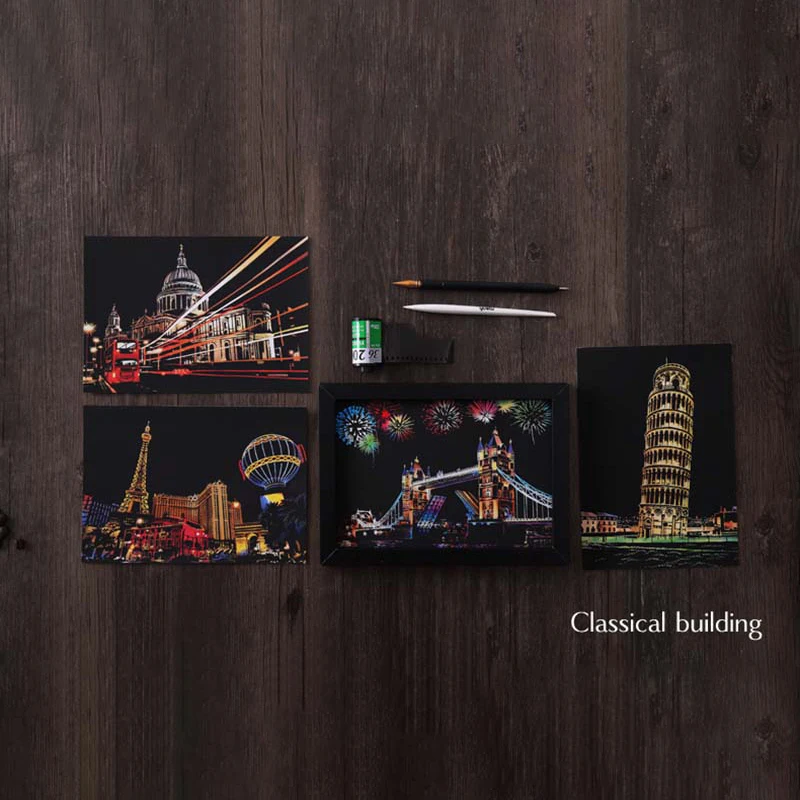 A5 открытка с рисунком царапин, архитектура с рисунком, искусственн...