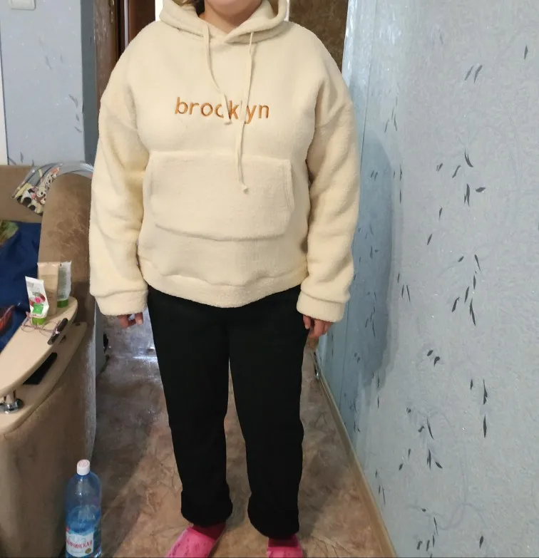 Женский спортивный костюм с надписью, теплый толстый свитшот с карм...