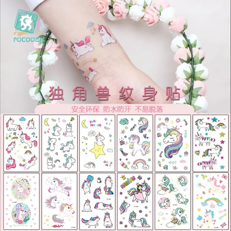 1 шт в виде единорога из мультфильма лошади татуировки Временные фальшивые татуировки наклейки для тела Водонепроницаемый татуировки золотого и серебряного искусства для детей милые детские татуировки 12x7.5cm