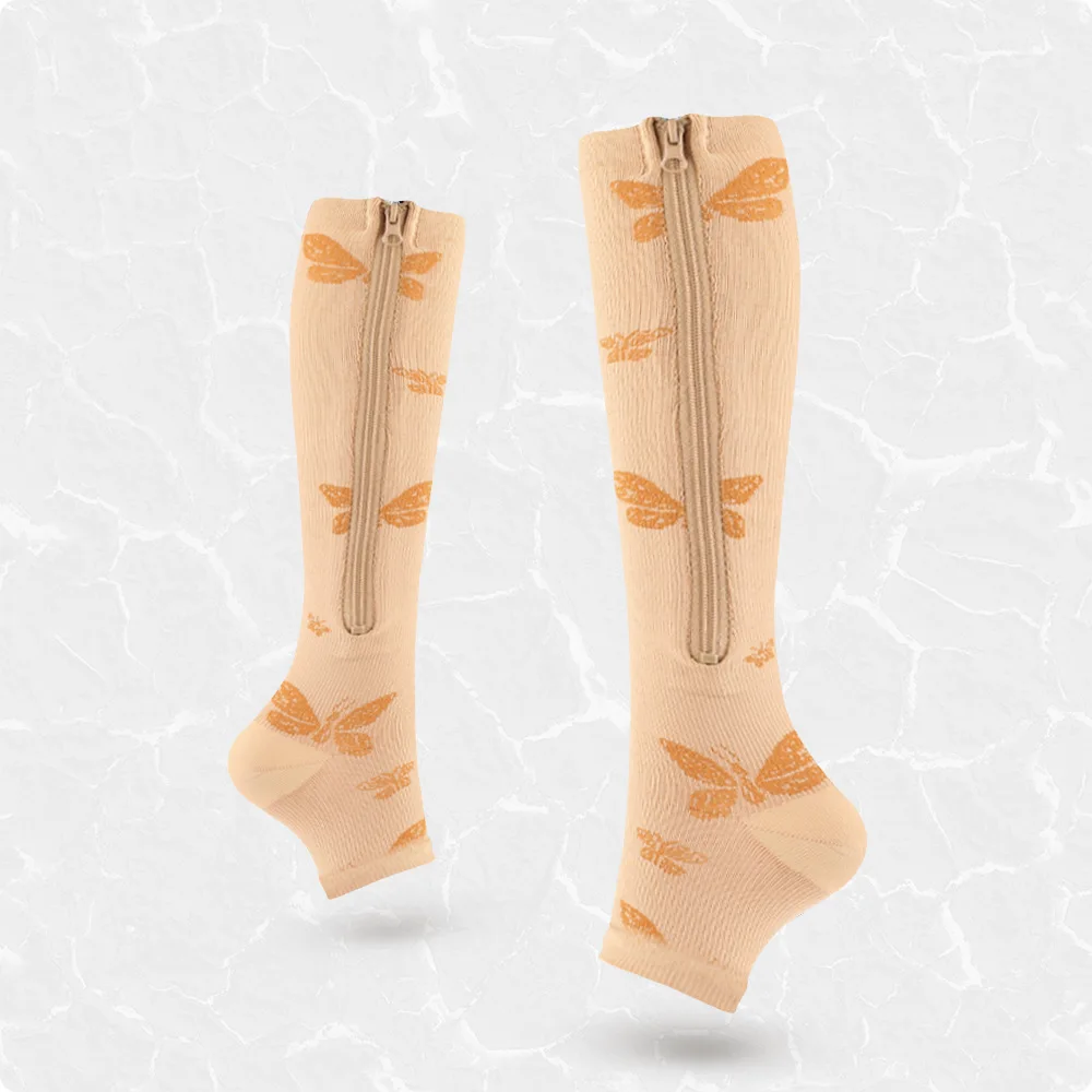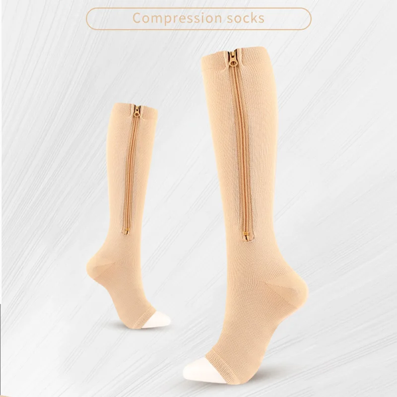 Компрессионные длинные носки унисекс, Спортивное нижнее белье с открытым носком для езды на велосипеде, забота о здоровье, на молнии, с циркуляцией, до колена