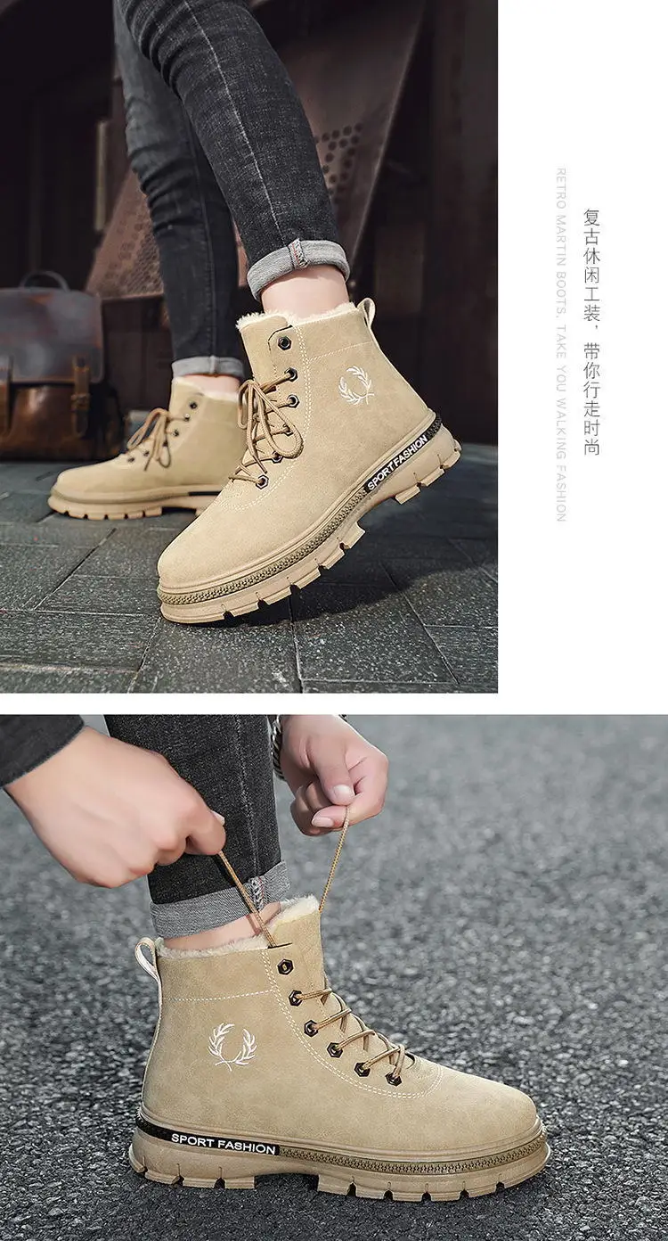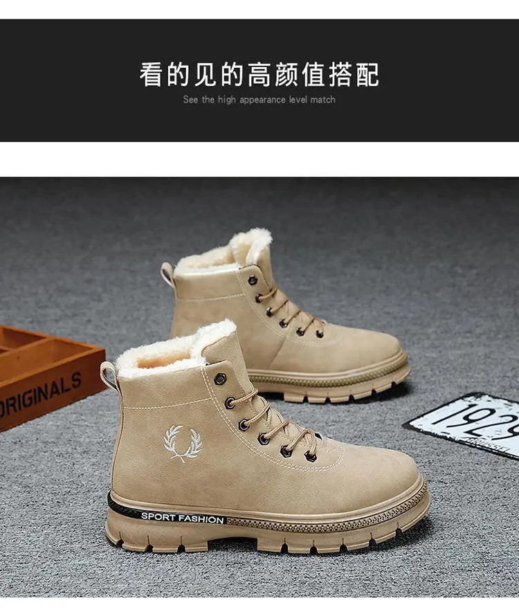 Мужские ботильоны на толстой платформе, Черные Водонепроницаемые ботинки с принтом, плюшевая теплая обувь, повседневные ботинки, Осень-зима 2020