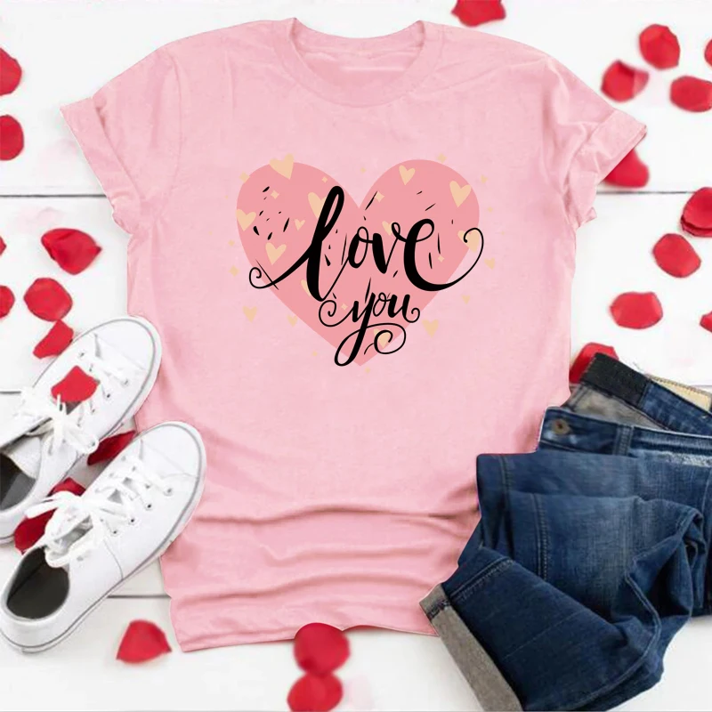 2021 ко Дню Святого Валентина Женские футболки короткий рукав свобо...