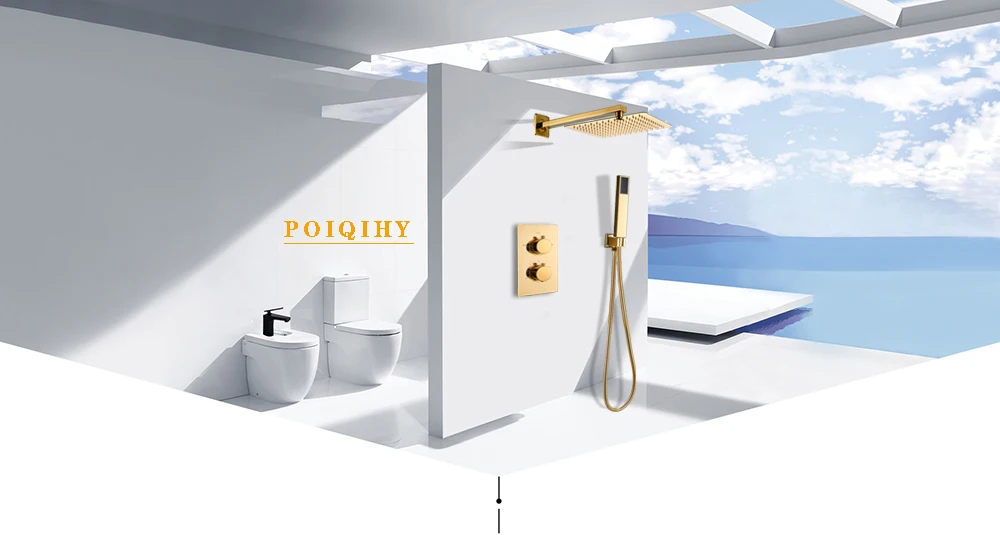 POIQIHY Термостатический смеситель для душа Золотой скрытый Ванная ...