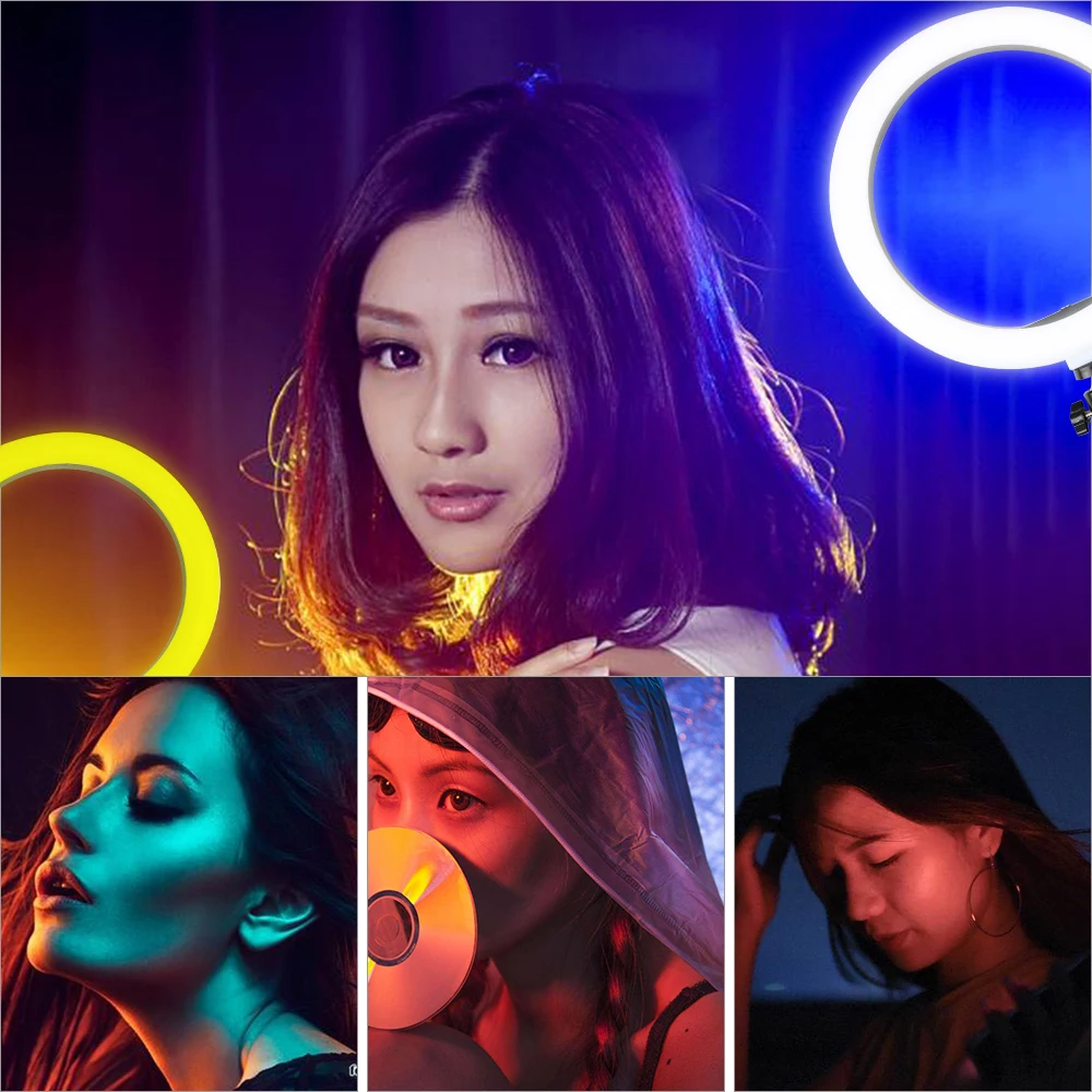 Светодиодный кольцевой светильник RGB для селфи, лампа с зажимом для телефона, освесветильник для фотосъемки, для студийной видеосъемки, прямой трансляции, 10 дюймов, 26 см