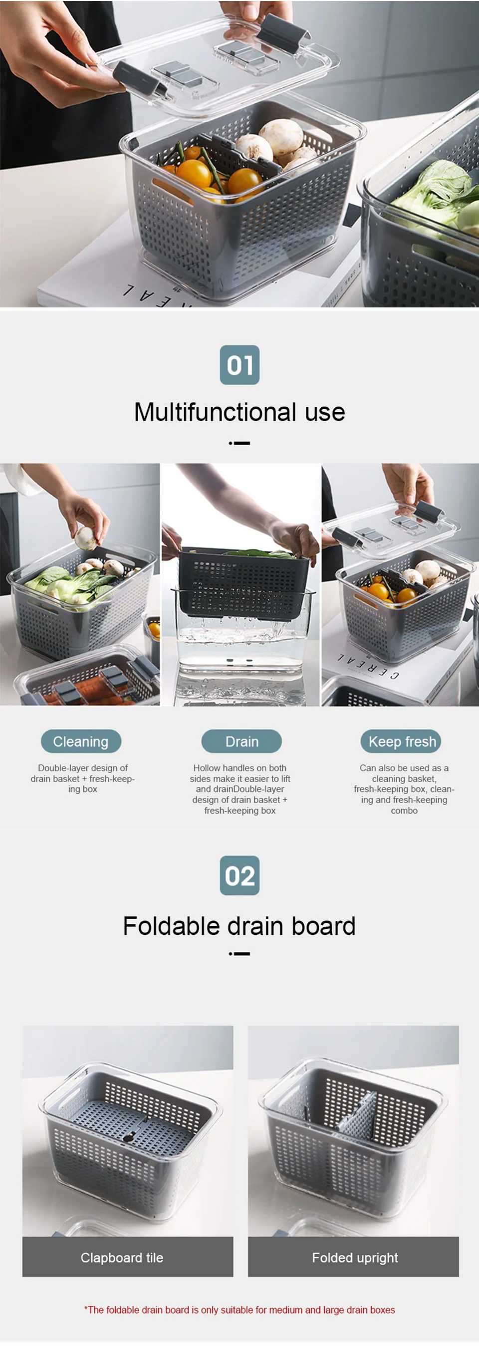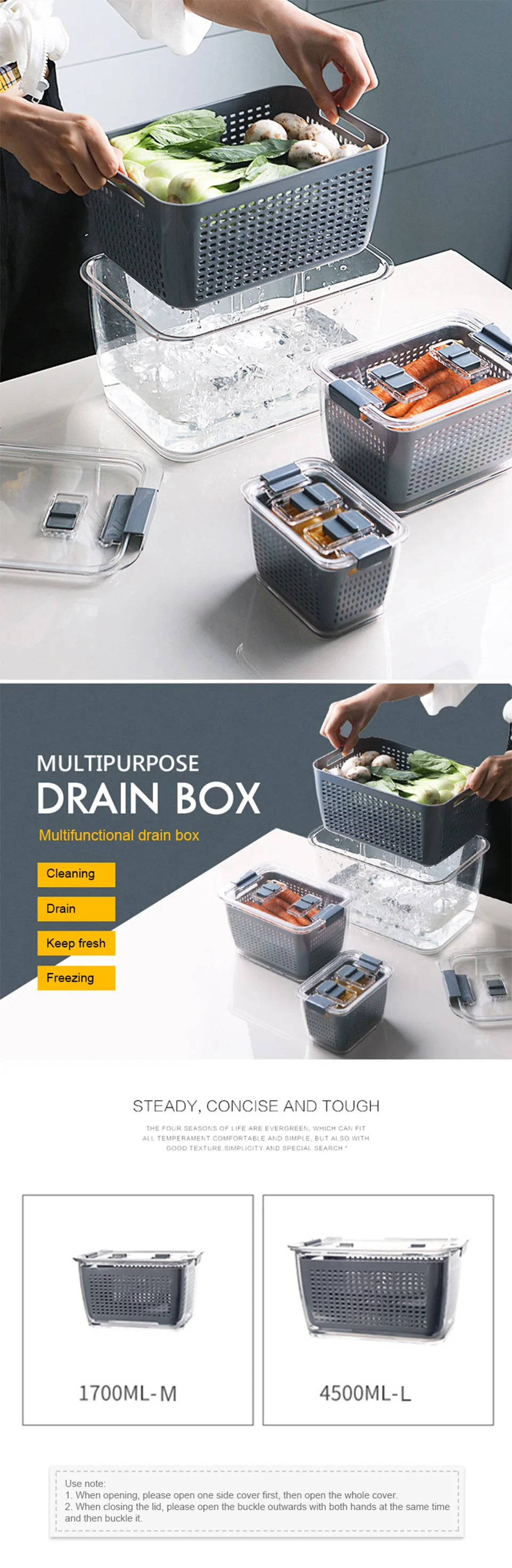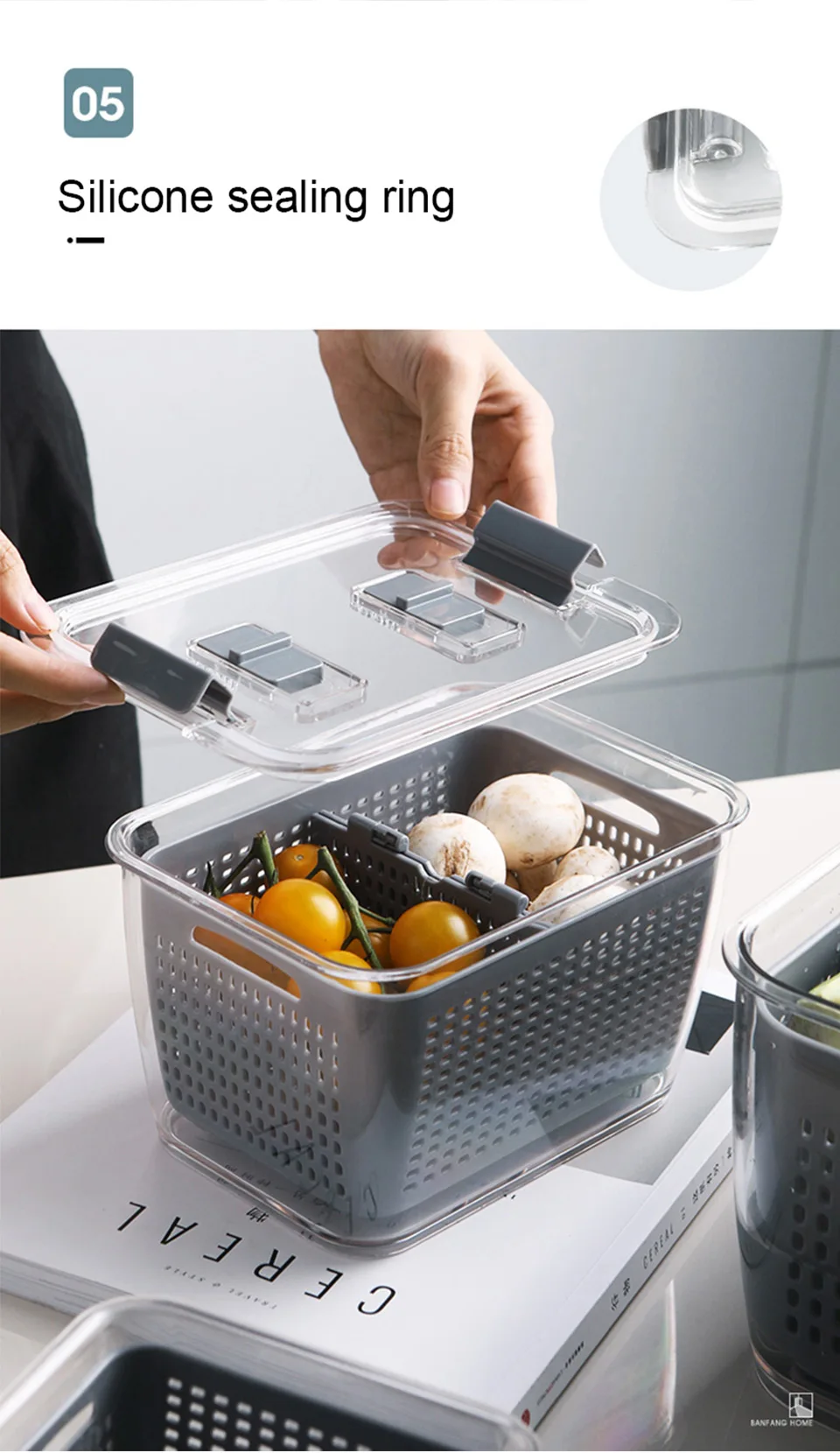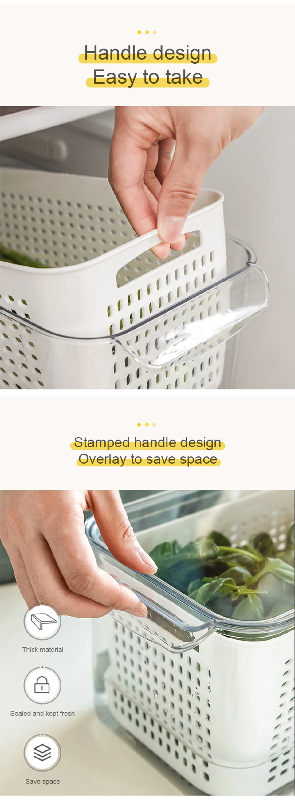 Пластиковая двухслойная герметичная коробка с крышкой, коробка для хранения свежего воздуха, кухонный холодильник, дренажная коробка для фруктов и овощей