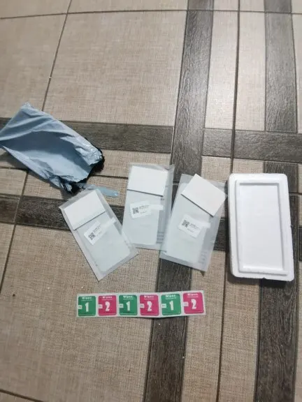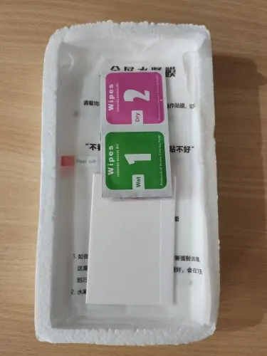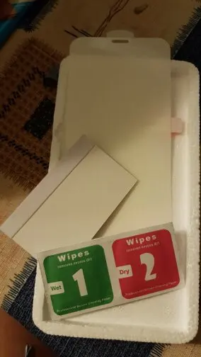 Это занимает около 10 дней. Он находится в белой пробковой коробке, но он хорошо защищен. Это первый раз, когда я надел гелевое защитное вещество. Я еще не пробовал, но выглядит хорошо. Выглядит очень хорошего качества. Есть несколько салфеток для протирания и шпатель для приклеивания. Aaaaa