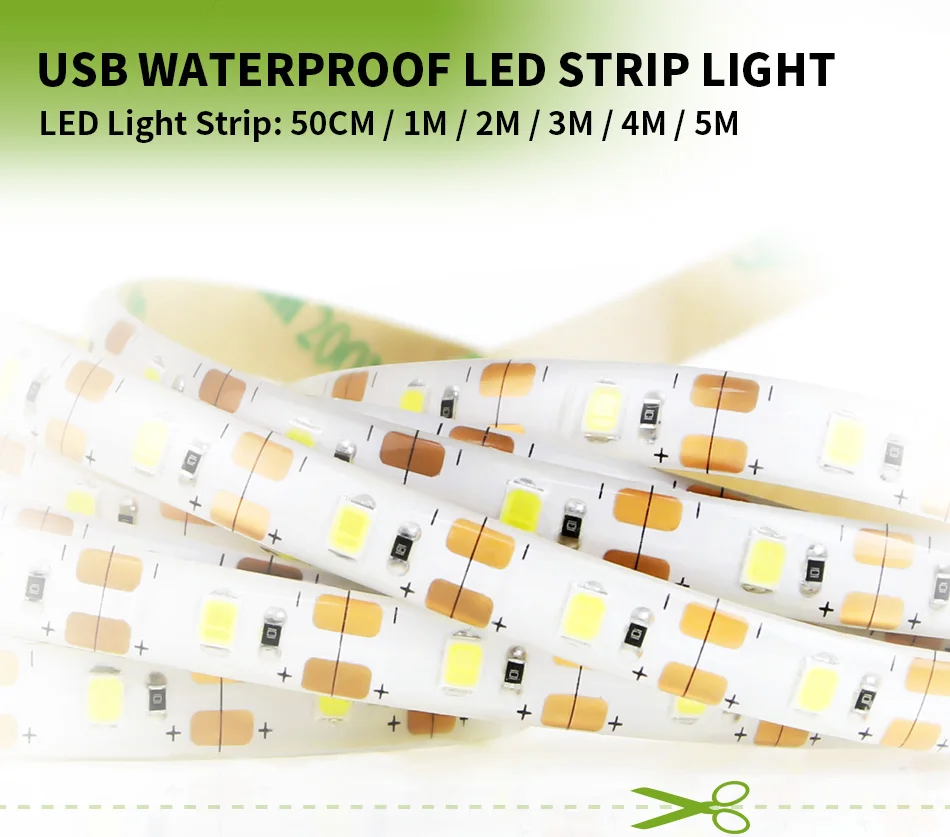 Светодиодная водонепроницаемая лента, гибкая лампа с USB, 5 В, 50 см, 1 м, 2 м, 3 м, 4 м, 5 м, используется для украшения шкафа, телевизора