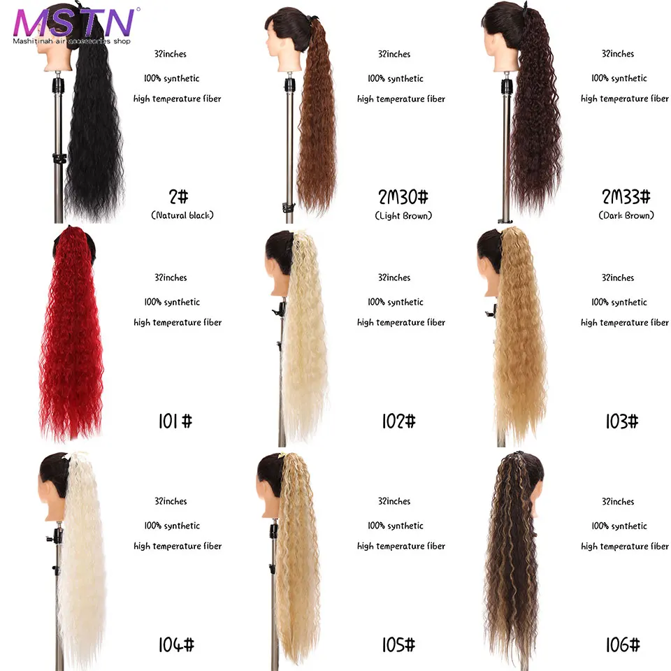 MSTN Синтетические длинные волнистые кудрявые волосы на заколке для конского хвоста, накладные волосы черного и светлого цвета, термостойкие накладные волосы из конского хвоста