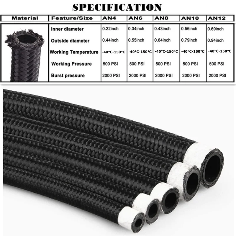 Универсальный автомобильный топливный шланг AN4AN6AN8AN10AN12, нейлоновая стальная оплетка, Газовый Радиатор, тормозной шланг, топливная трубка, 1 м
