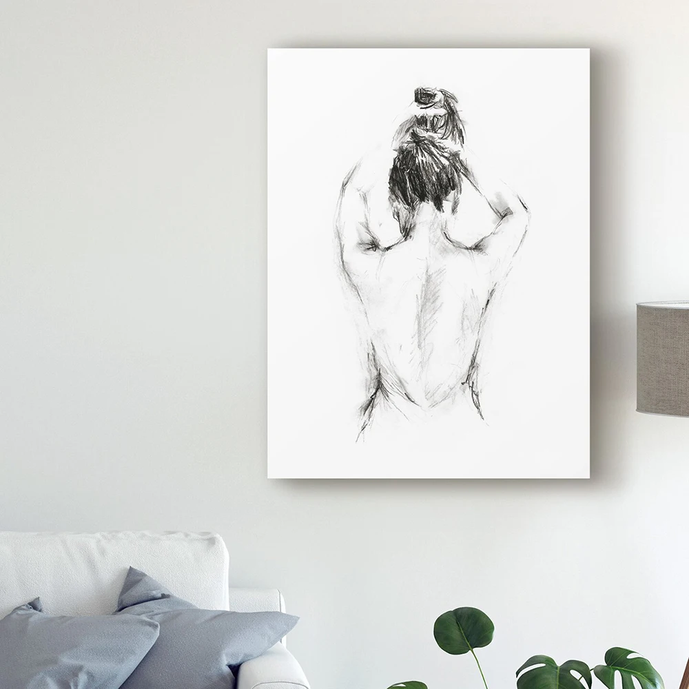 Женский рисунок на холсте, абстрактная живопись, Обнаженная женщина, принт на спине после купания, минималистичный постер для ванной, домашний декор