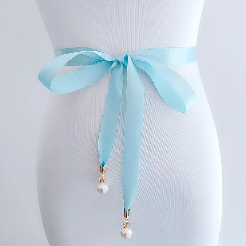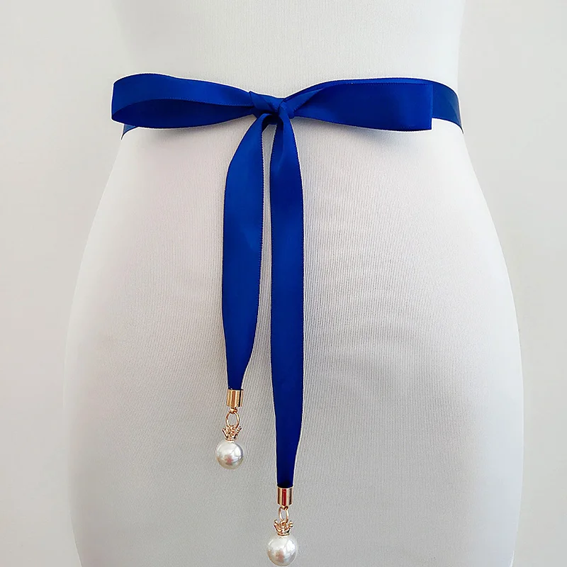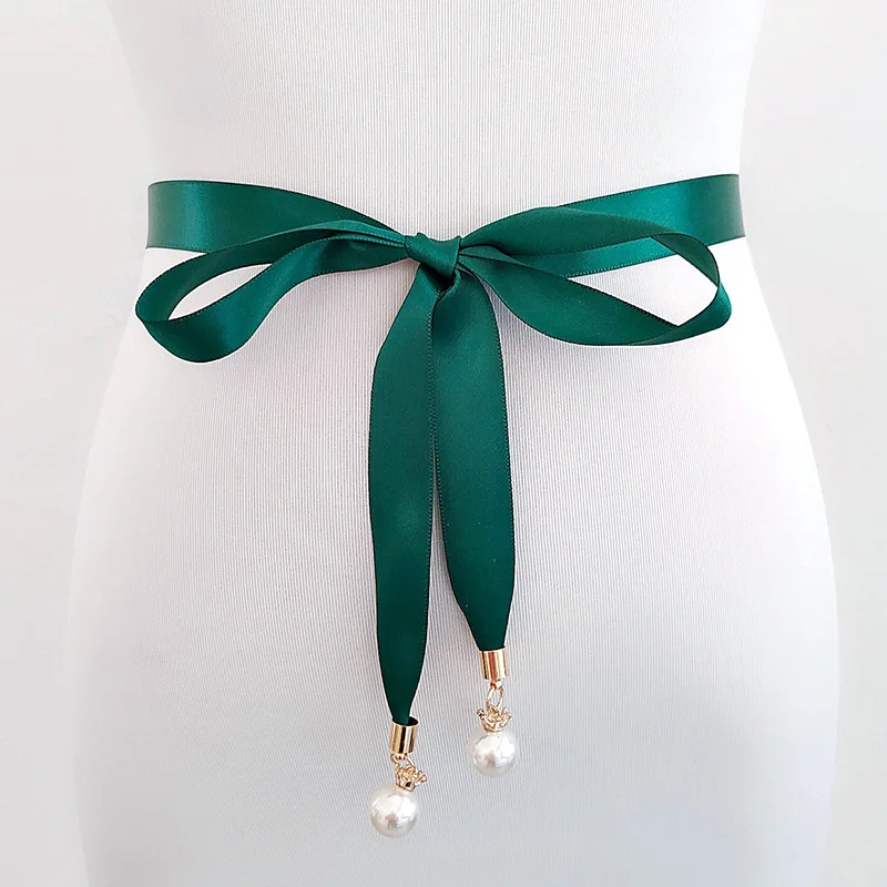 Ремень с жемчужной подвеской Женский, простой пояс из мягкого шелка, однотонный, с кулоном в виде короны, для платьев и джинсов