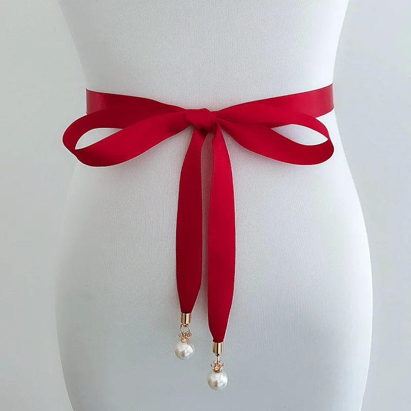 Женский ремень, тонкий жемчужный ремень, веревка для платьев, ремен...
