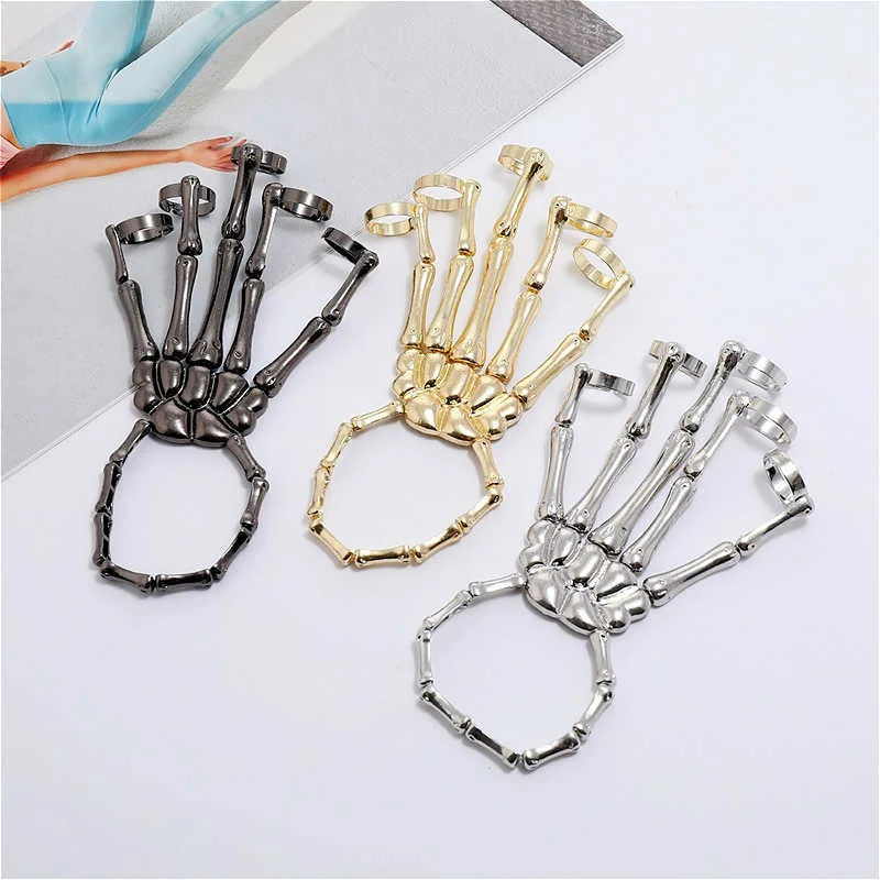 Пара Браслеты в стиле панк ювелирные изделия мужские готические рука Череп Скелет Эластичность Регулируемая Парные браслеты для женщин