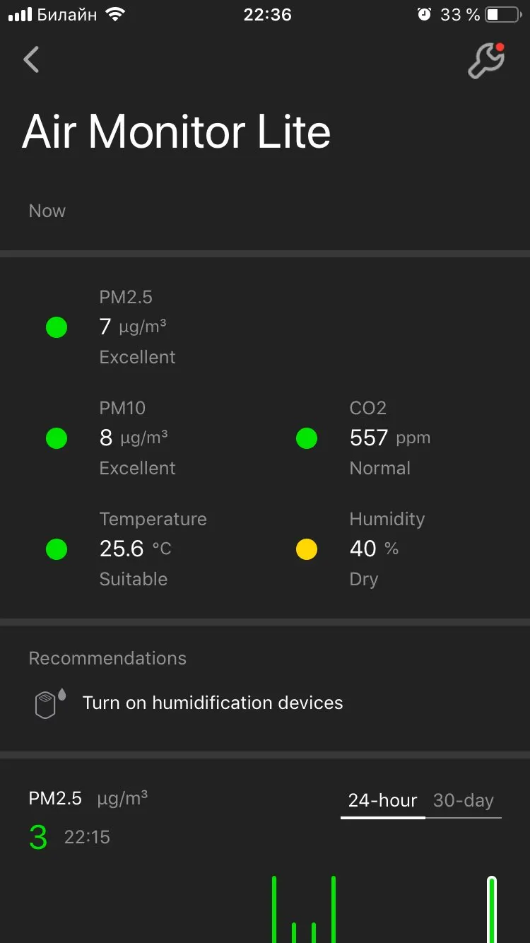 Отличная штука. Приятно видеть какое сейчас качество воздуха и вовремя открывать окно или включать увлажнитель. Точность датчиков кажется хорошей. Дизайн отличный, и пользоваться удобно. Не хватает нормальной кастомизации экрана и может разных тем. Пока только по одному датчику на экран или по маленькому через время. Нельзя запретить переход в режим экономии, возможно из за олед экрана. Приложение работает ужасно. Данные могут перестать обновляться через время, а помогает только полный перезапуск приложения. Иногда приходиться подключать его по новой, удаляя старое соединение. Подключить к Mi Home не получилось, приложение не видит устройство и в списке его нет. Если долго нет сети Wi-Fi - приходится делать подключение с нуля. Надеюсь, что со временем через обновления функционал будет шире и приложение начнёт работать нормально. Вообще советую. Удобная и полезная штука. Отлично подходит как подарок.
