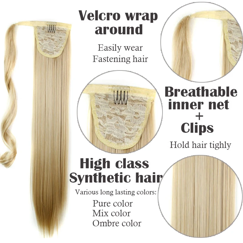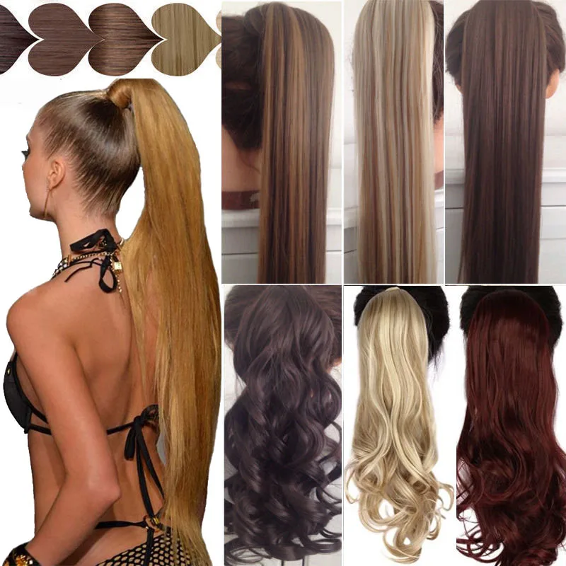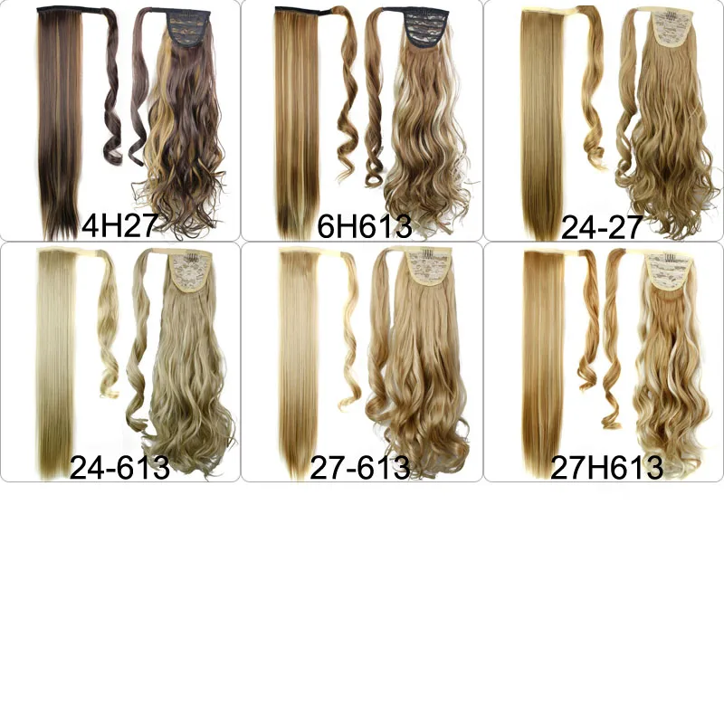 Синтетические волосы на клипсе, 24 дюйма, конский хвост, прямой и кудрявый конский хвост, термостойкая Накладка для наращивания волос, круглая шиньон