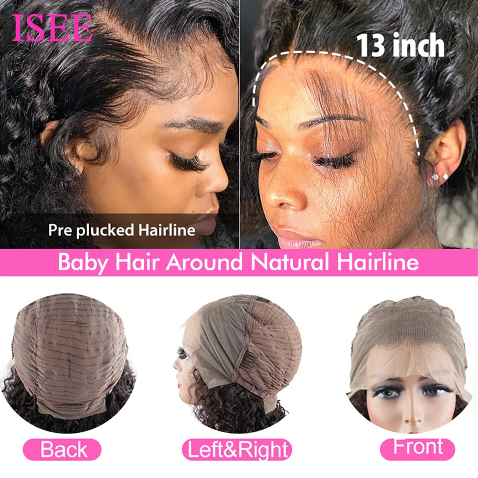 Парик ISEE с кудрявыми натуральными волосами, 13x 4, плотность 180%