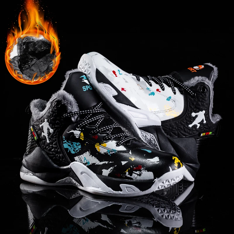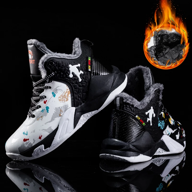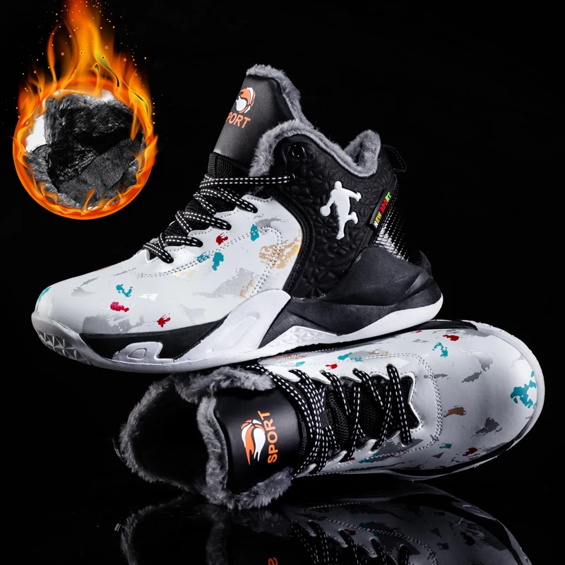 Новая мужская и женская модная спортивная баскетбольная обувь, зимняя Молодежная Спортивная кашемировая обувь для активного отдыха
