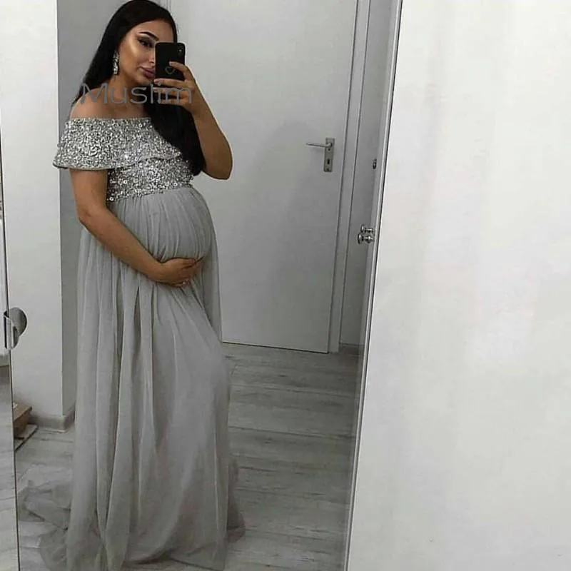 Беременности и родам Серебряные вечерние платья с блестками с вырезом лодочкой размера плюс Vestidos De Novia длинные развертки беременных для выпускного вечера официальная Вечеринка платья