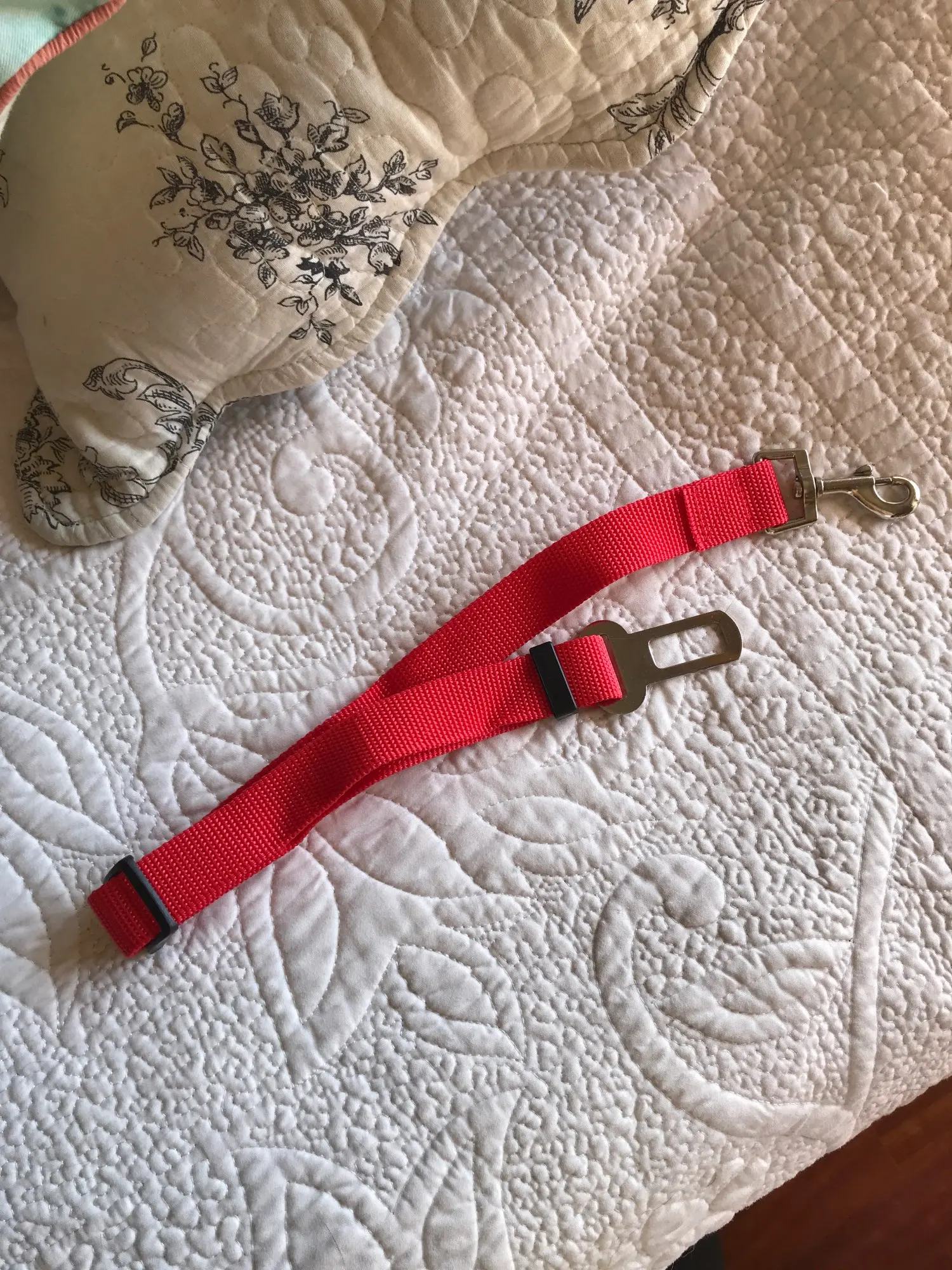 Ремень соответствует описанию, подходит для машины, как раз чтобы собака не перелезла вперёд.