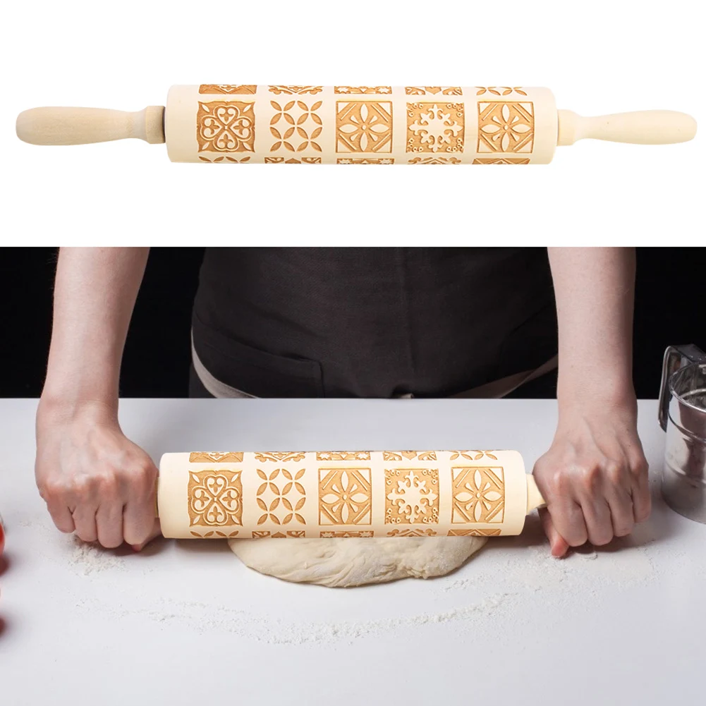 Дерево тиснение Скалка помадка торт тесто печенье лапша печенье винтажный узор выгравированный ролик