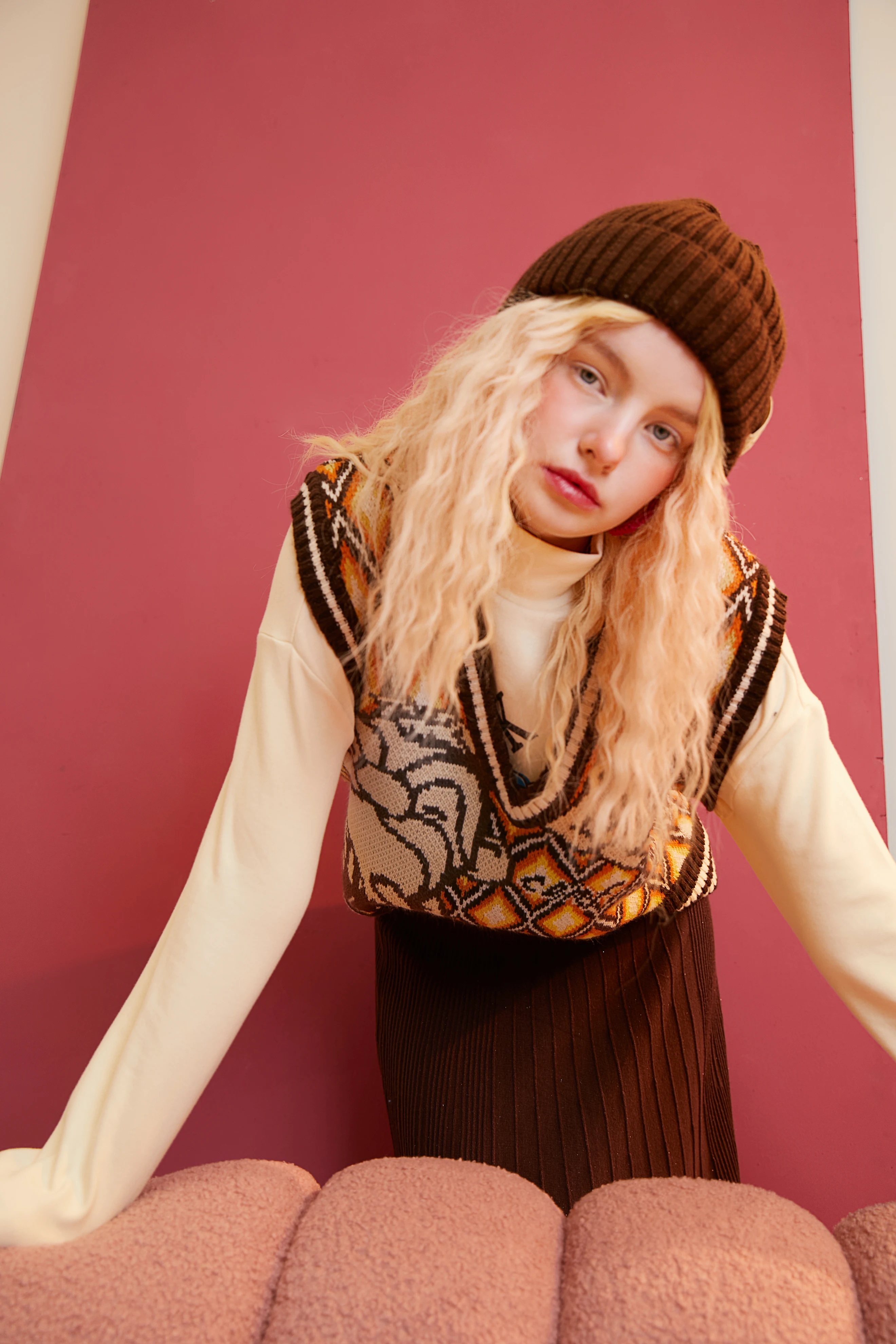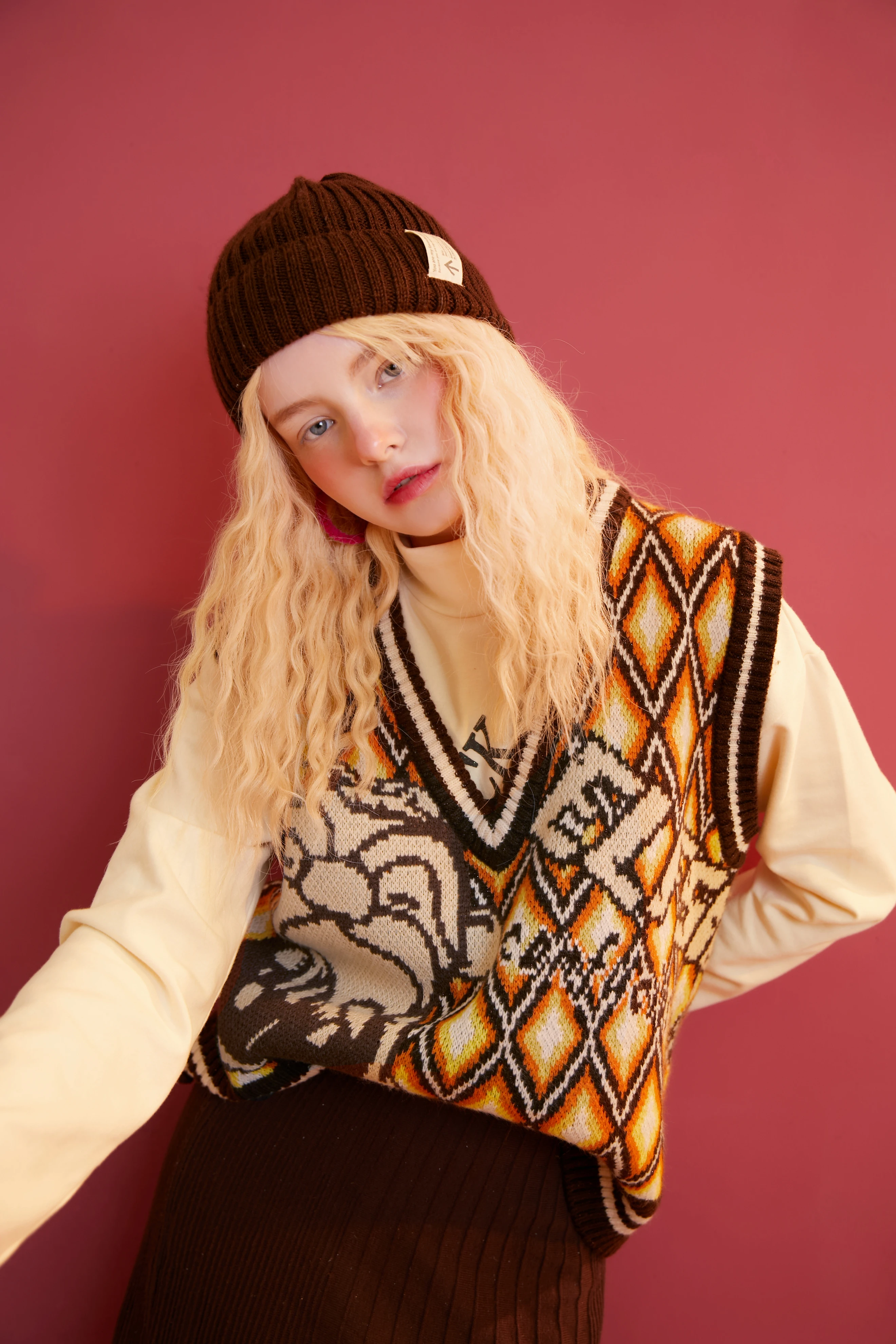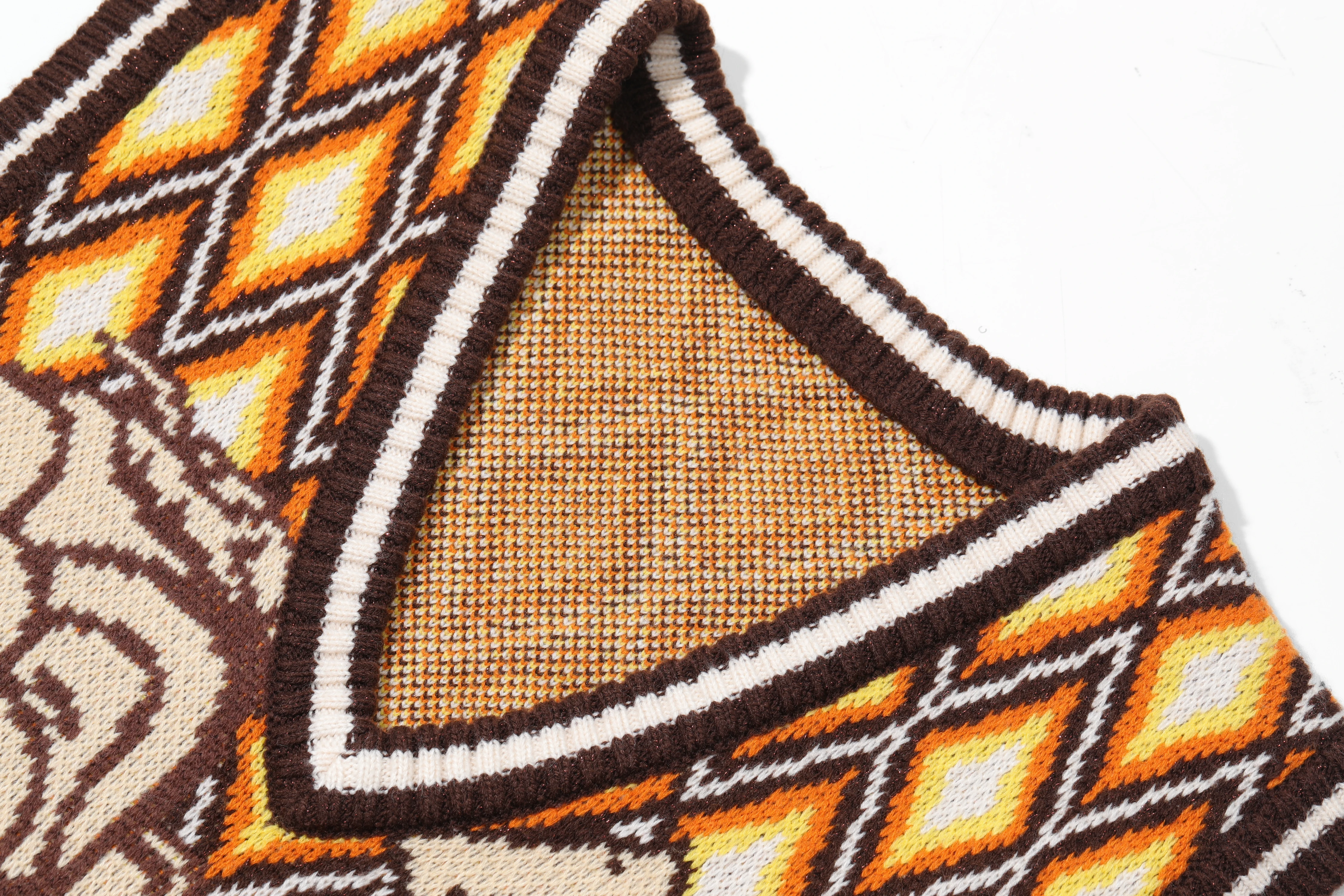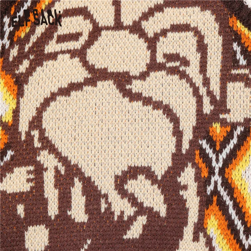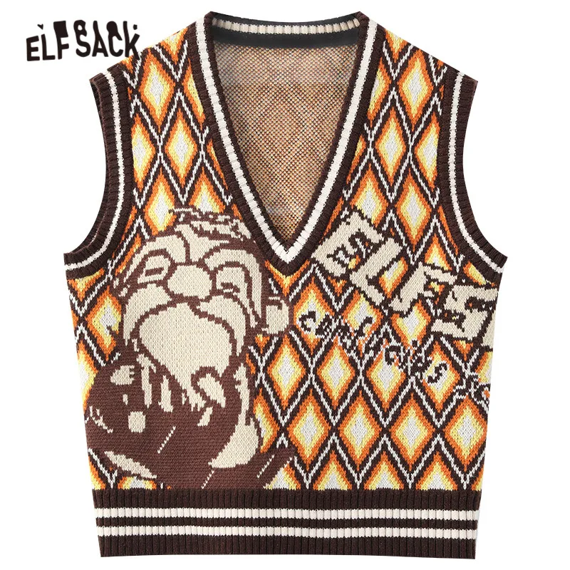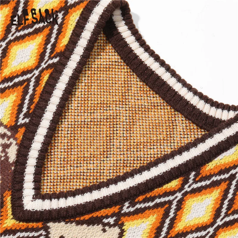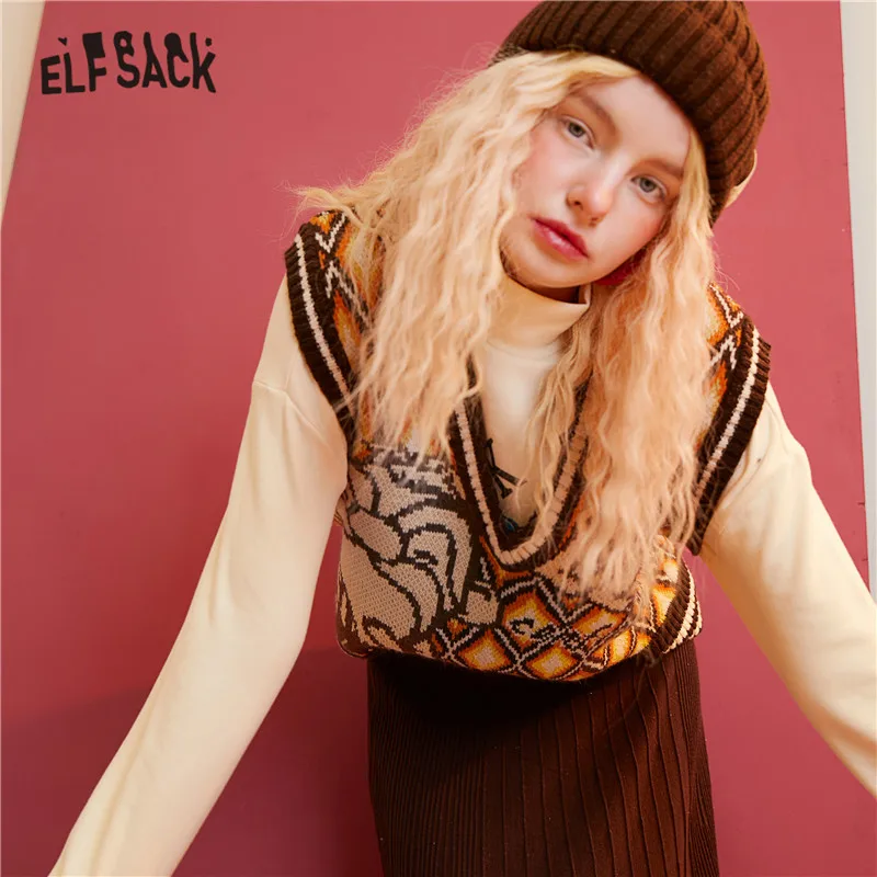 ELFSACK Confucius жаккардовый вязаный пуловер Женский Повседневный свитер жилет, 2021 зимний v-образный вырез без Рукавов корейский Женский Повседневный винтажный Топ