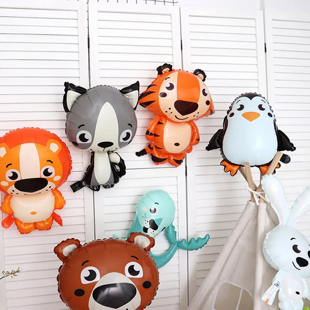 1 Набор из джунглей мультфильм животных шар с лисьим и кроличьим Пингвин Бегемот Tiger крокодил алюминиевой фольги воздушный шар Вечеринка зоопарк детская игрушка