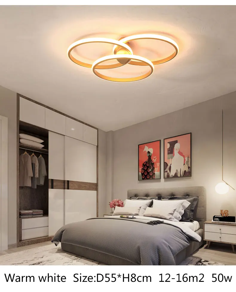 Потолочная люстра, светодиодная для гостиной, столовой, спальни, алюминиевая, золотистая