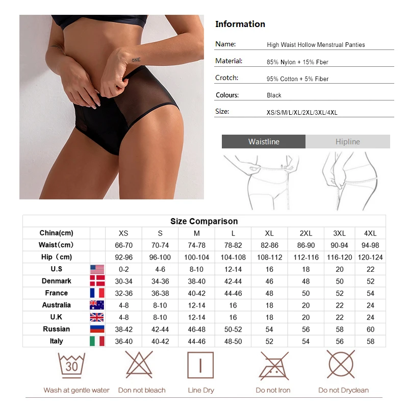 1. Менструальные трусики способны выдерживать много жидкости, вы можете носить наши менструальные трусики без каких-либо подкладок, это принесет комфорт;