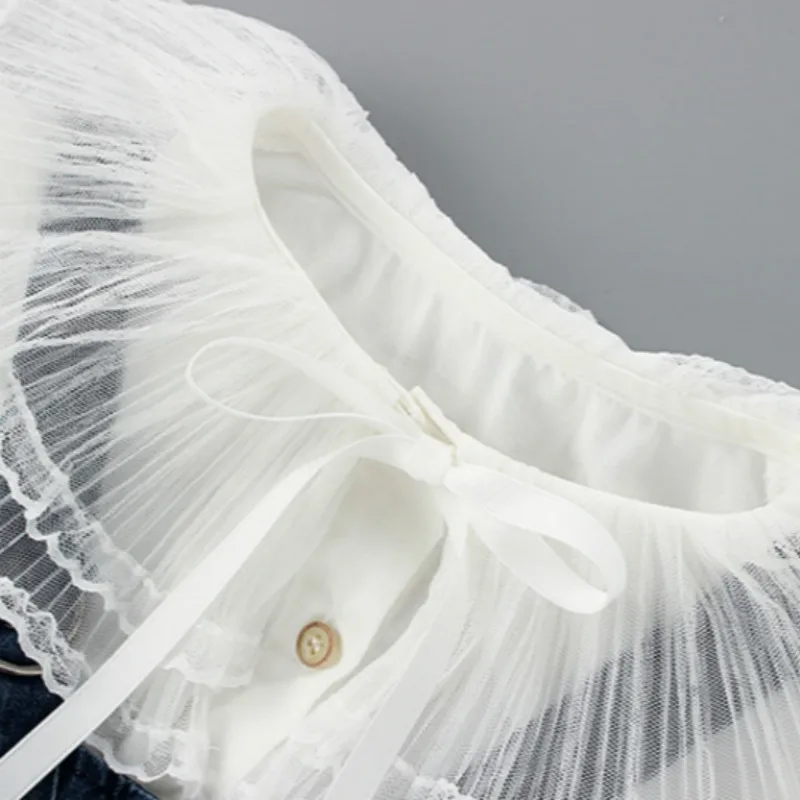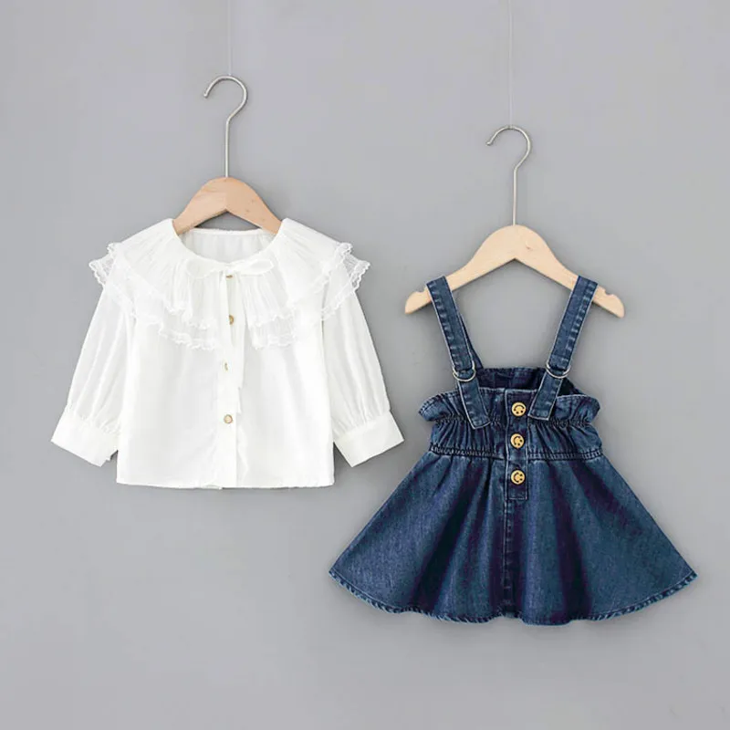 Платье для малышей 1-3 года, новинка 2021, весенне-Осенняя детская верхняя одежда, большая кружевная рубашка с воротником и платье без рукавов, комплект из двух предметов для девочек