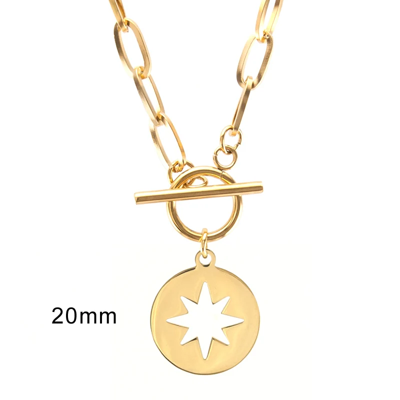 Ожерелье женское из нержавеющей стали с шестиконечными звездами и полярными звездами, колье-чокер с металлическими монетами золотистогосеребристого цвета
