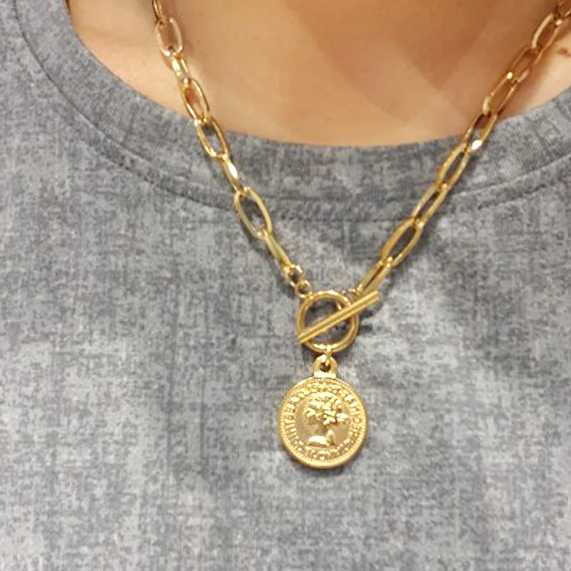 Женское винтажное ожерелье с подвеской в виде монеты из нержавеющей...