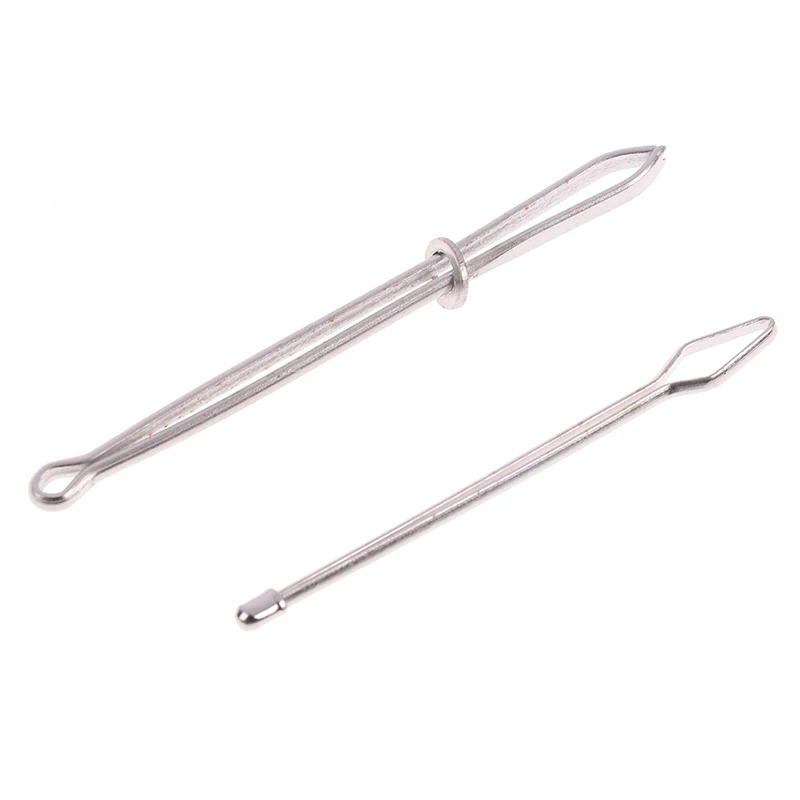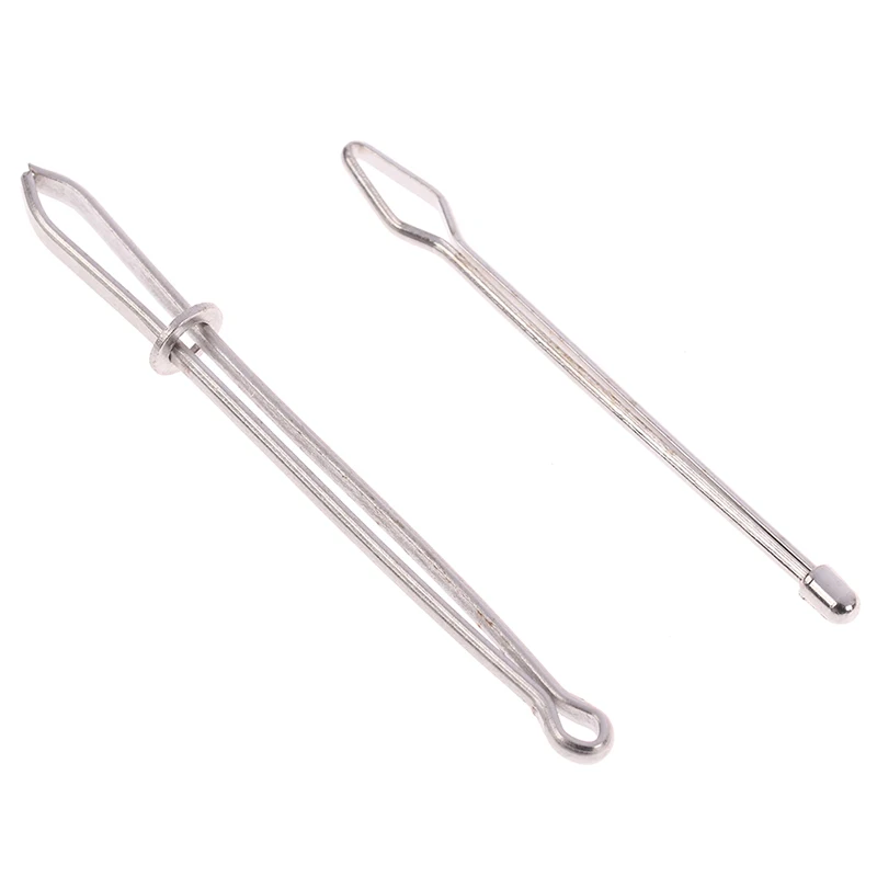 Характеристики:Цвет: серебристый, белыйМатериал: нержавеющая стальРазмер: длина 8,3 см/3,27 ", 6,5 см/2,56"Использование:Носите веревку, носите эластичный пояс, хлопковую веревку, оберните веревку и так далее.Инструменты очень практичные, необходимые инструменты для домашнего повседневного использования.