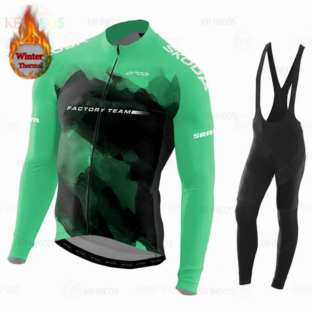 Велосипедный комплект из джерси 2022, зимняя флисовая длинная Джерс...