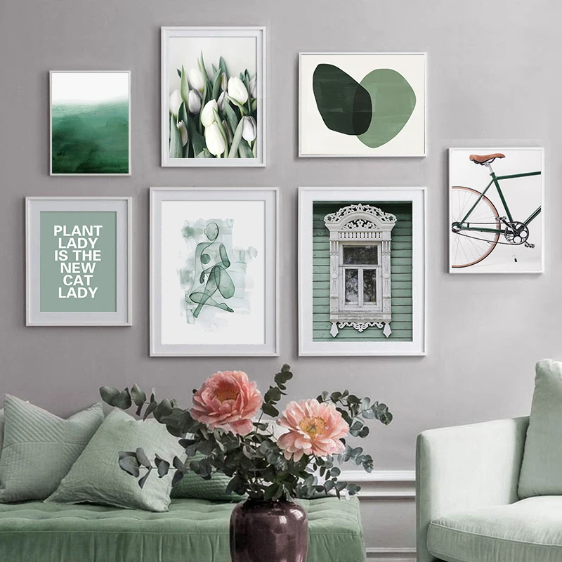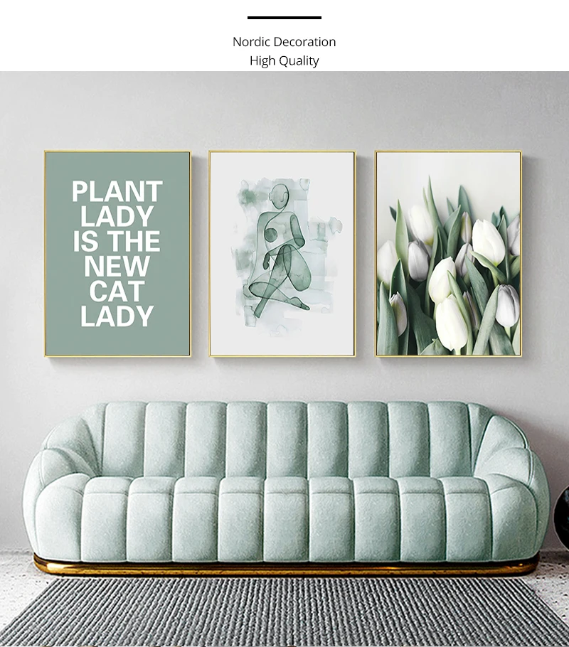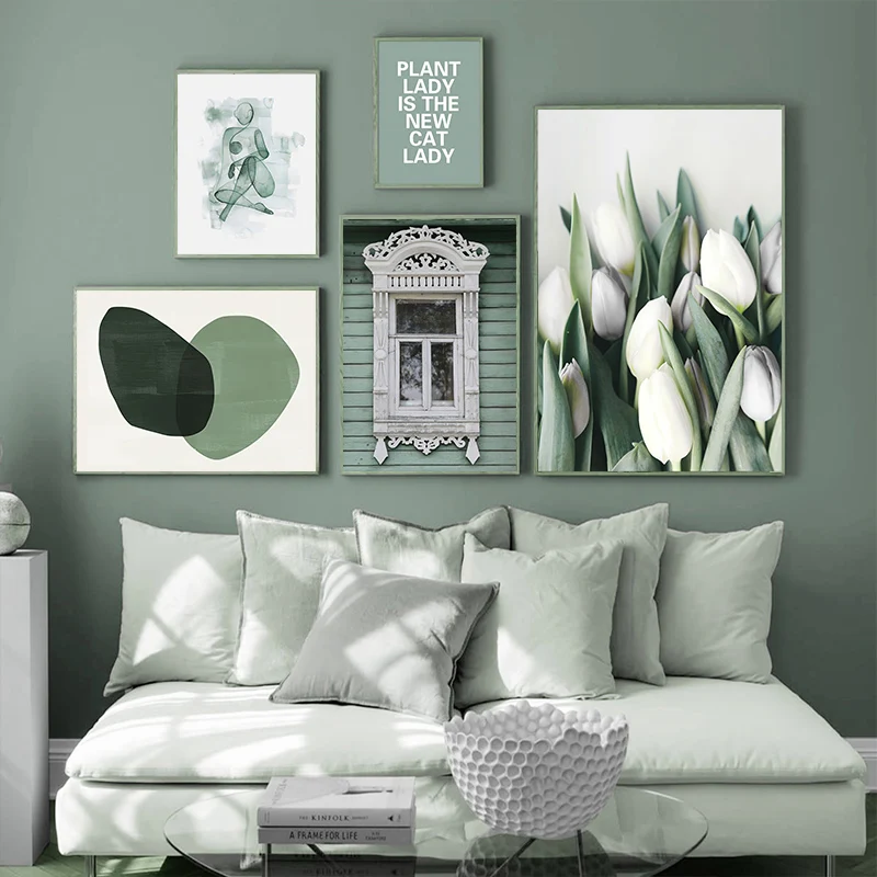 Абстрактное зеленое растение, природа, Скандинавская настенная живопись, скандинавские плакаты и принты, настенные картины для гостиной, домашний декор
