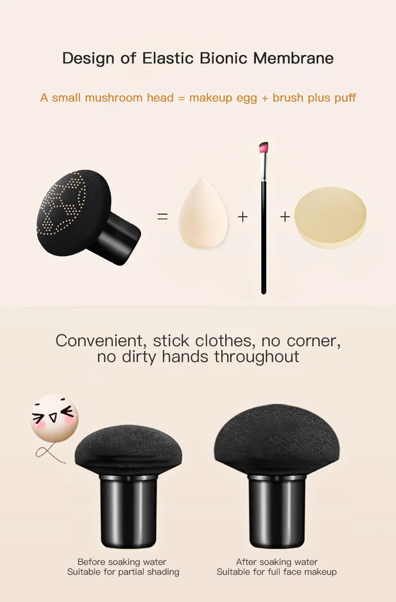 Ультра-мягкий грибной аппликатор: с уникальными вырезами и отверстиями для безлазания и меньшего поглощения; Предназначен для достижения всех областей лица и что-либо плавно.
