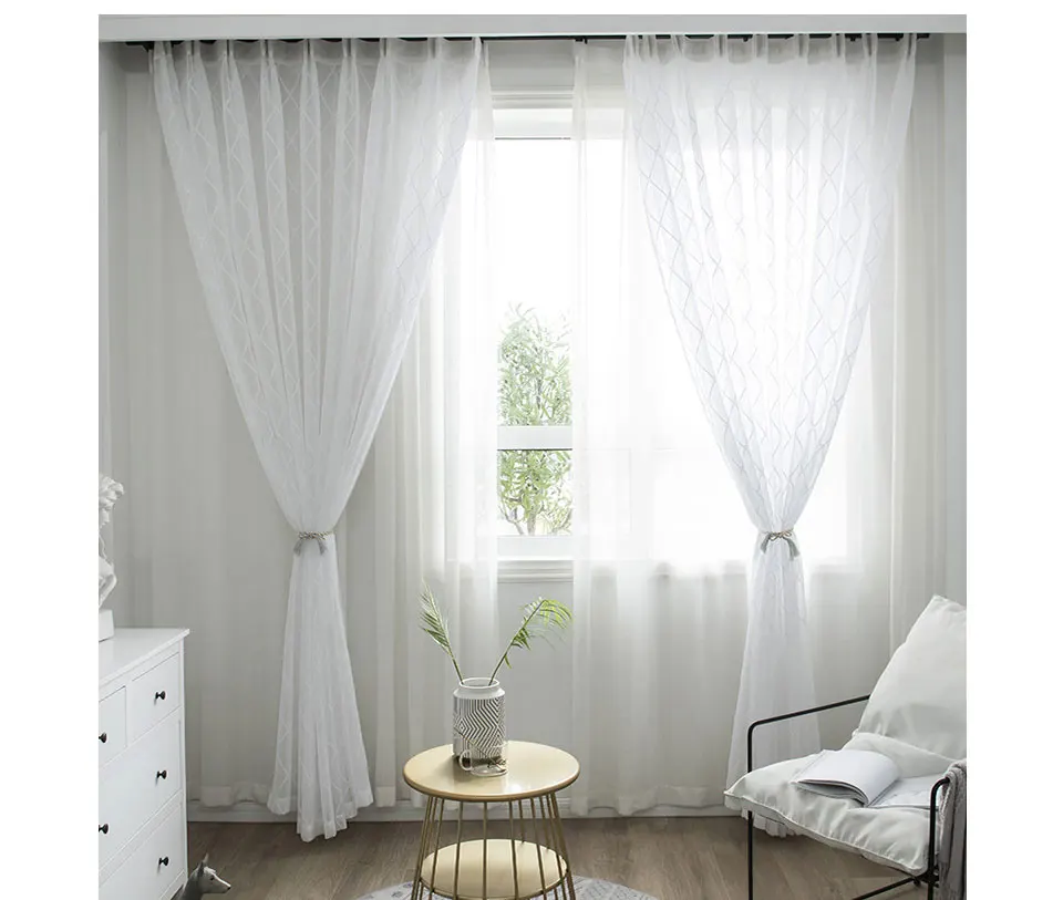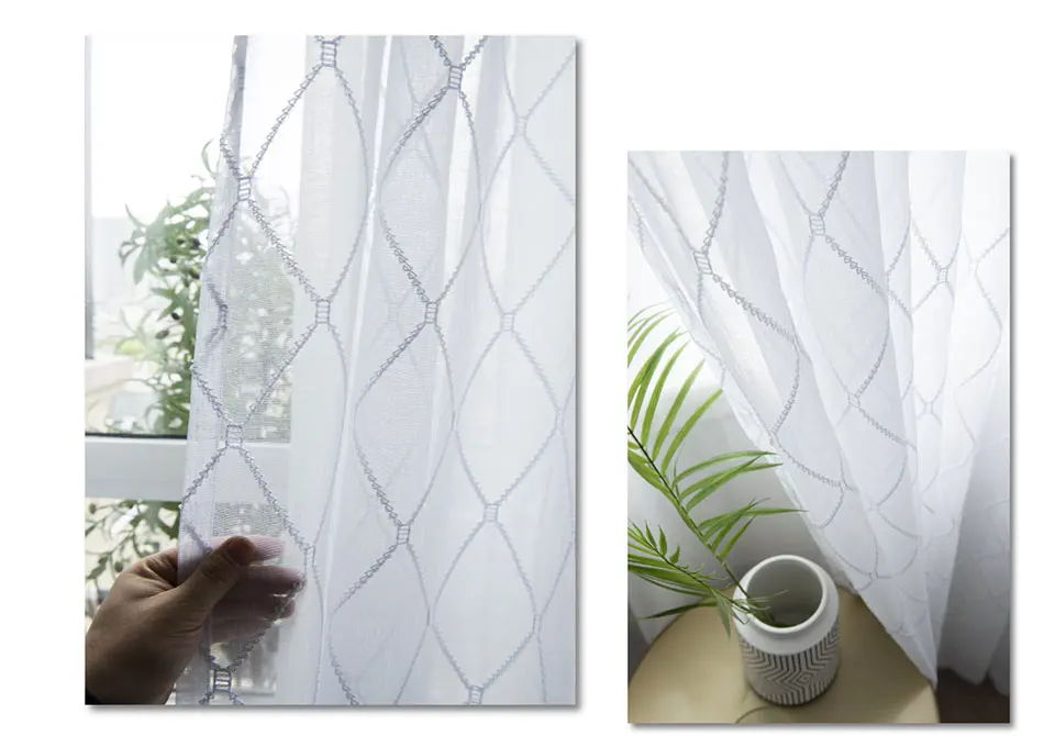 Современные тюлевые занавески в клетку для гостиной, белая прозрачная вуаль для спальни, драпировка, шторы, готовый Декор