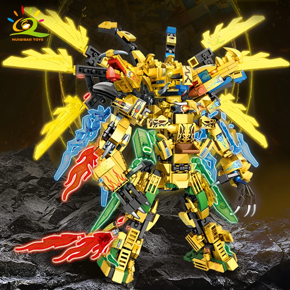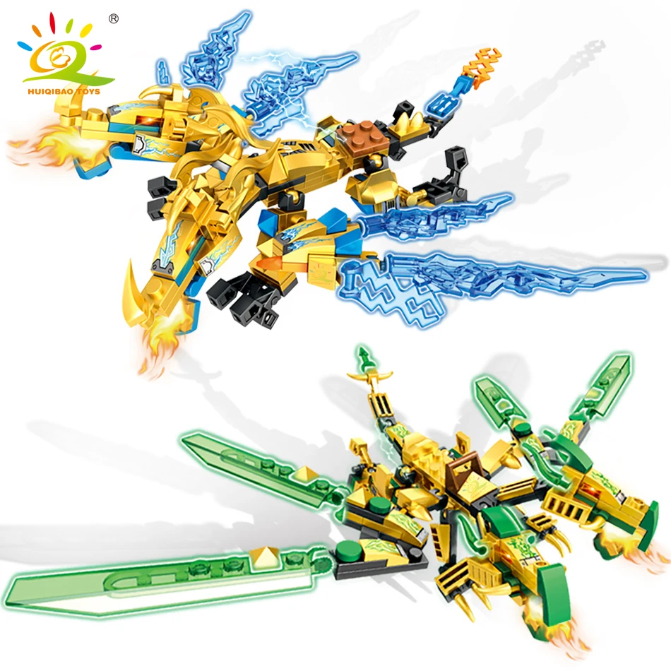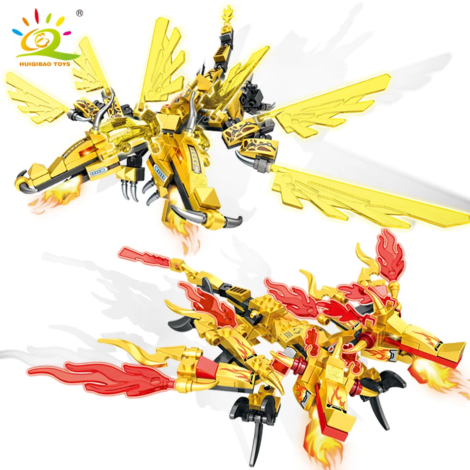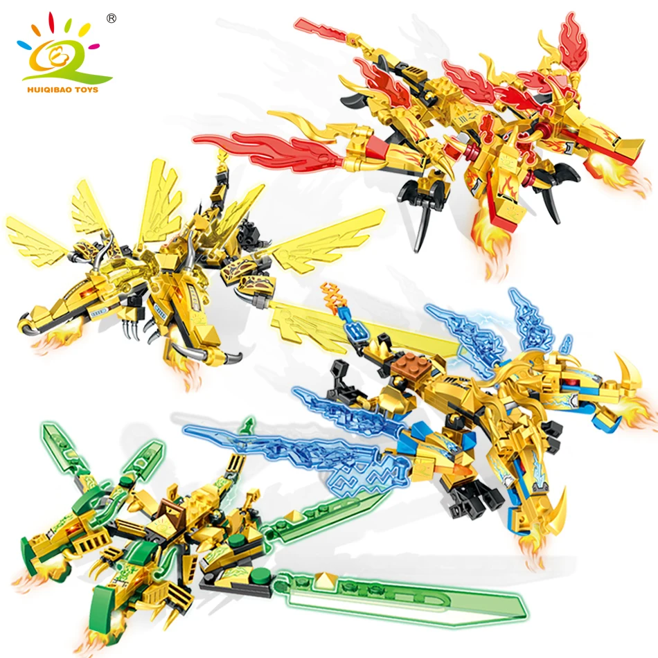 HUIQIBAO 727 шт золотая меха модель строительные блоки 4 в 1 ниндзя-Дракон модель с фигурами город кирпичи обучающая игрушка для детей