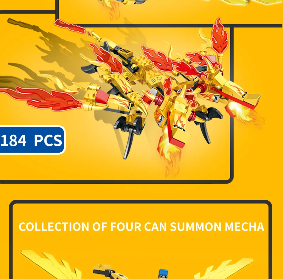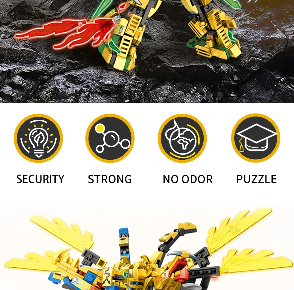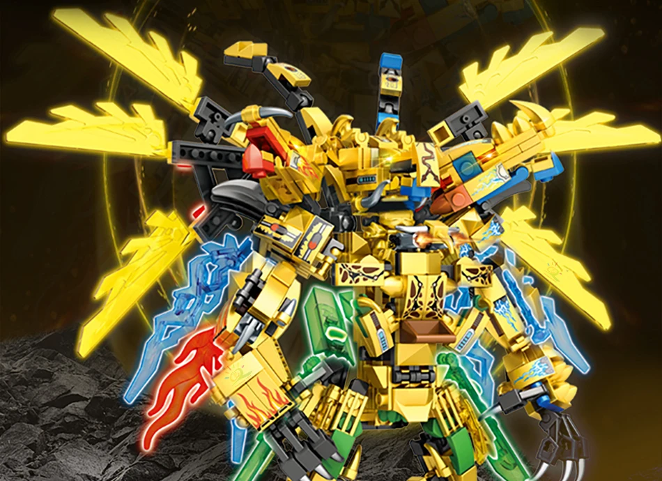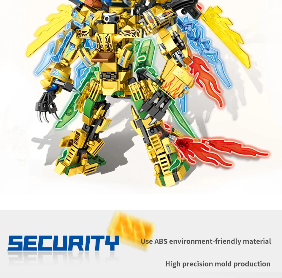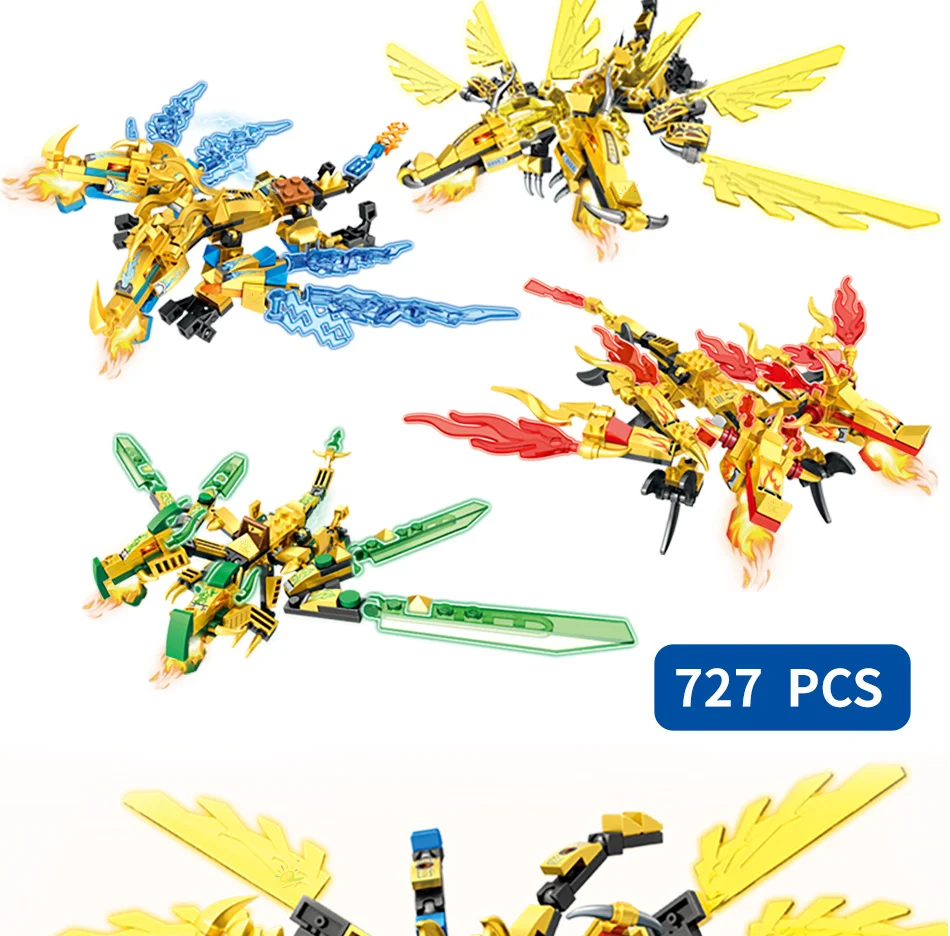 HUIQIBAO 727 шт золотая меха модель строительные блоки 4 в 1 ниндзя-Дракон модель с фигурами город кирпичи обучающая игрушка для детей