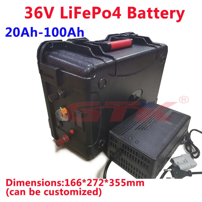 Водонепроницаемый 36V 20Ah 40Ah 50Ah 60Ah 80Ah 100Ah LiFepo4 литиевый аккумулятор с BMS для резиновой солнечной системы EV RV + зарядное устройство